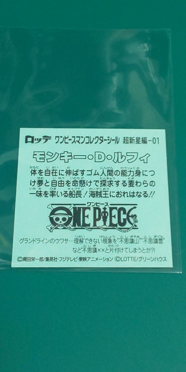 「ワンピースマン コレクターシール 超新星編‐01 モンキー・D・ルフィ」になります。