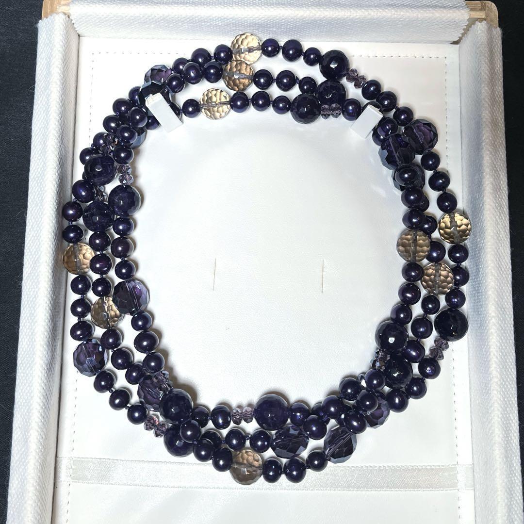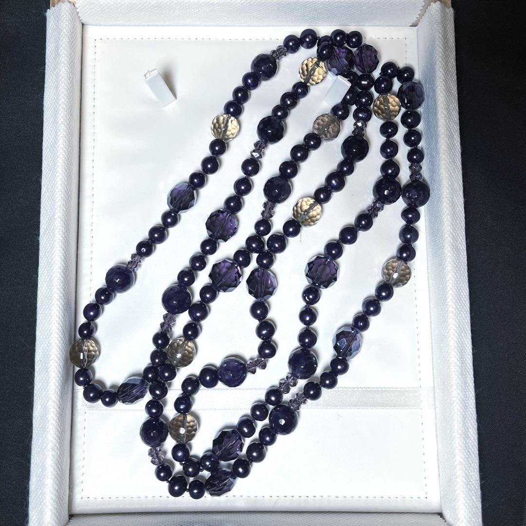 本真珠 超ロングネックレス マルチカラーストーン 7.5〜9.0㎜ M490