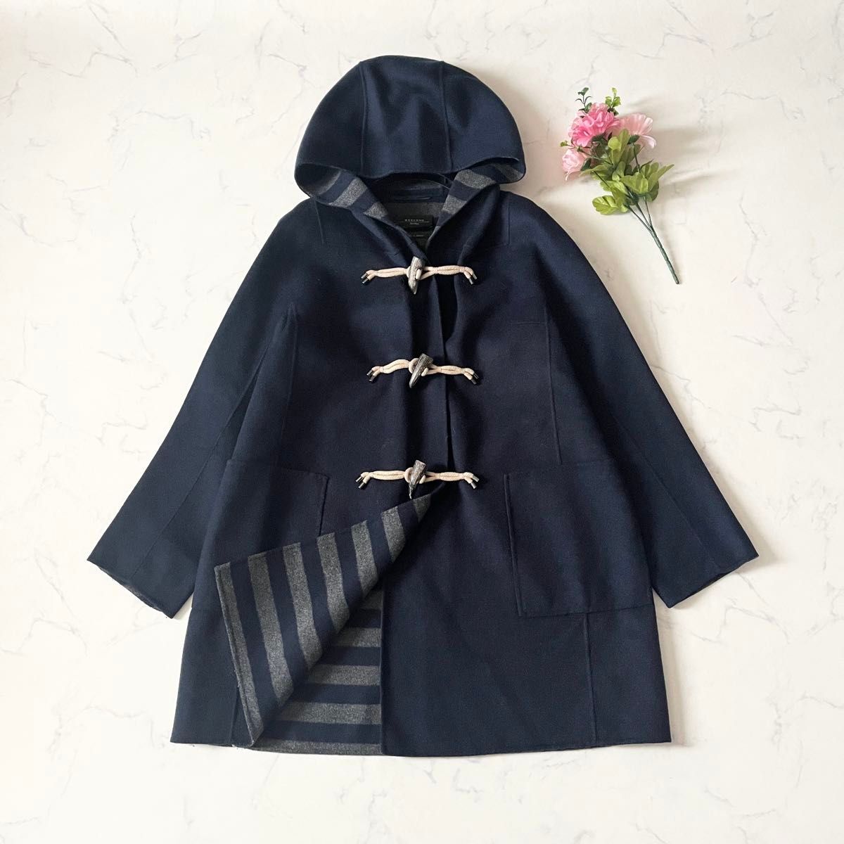 クチートアマーノ ダッフルコート 内側ストライプ