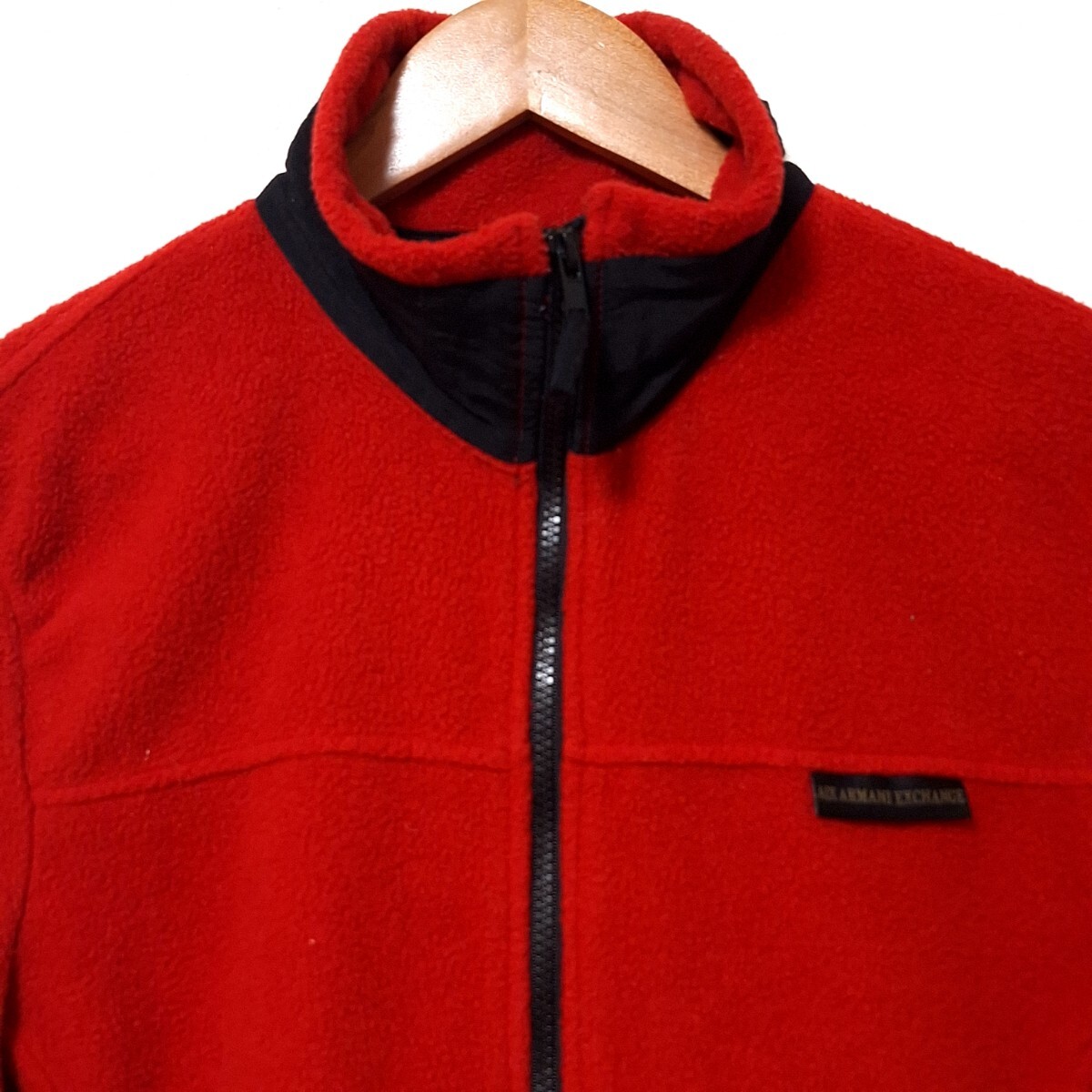 W643【A|X ARMANI EXCHANGE】アルマーニエクスチェンジ フリース ジャケット アウター USA製 軽量 保温性 レッド メンズ サイズM /QQ