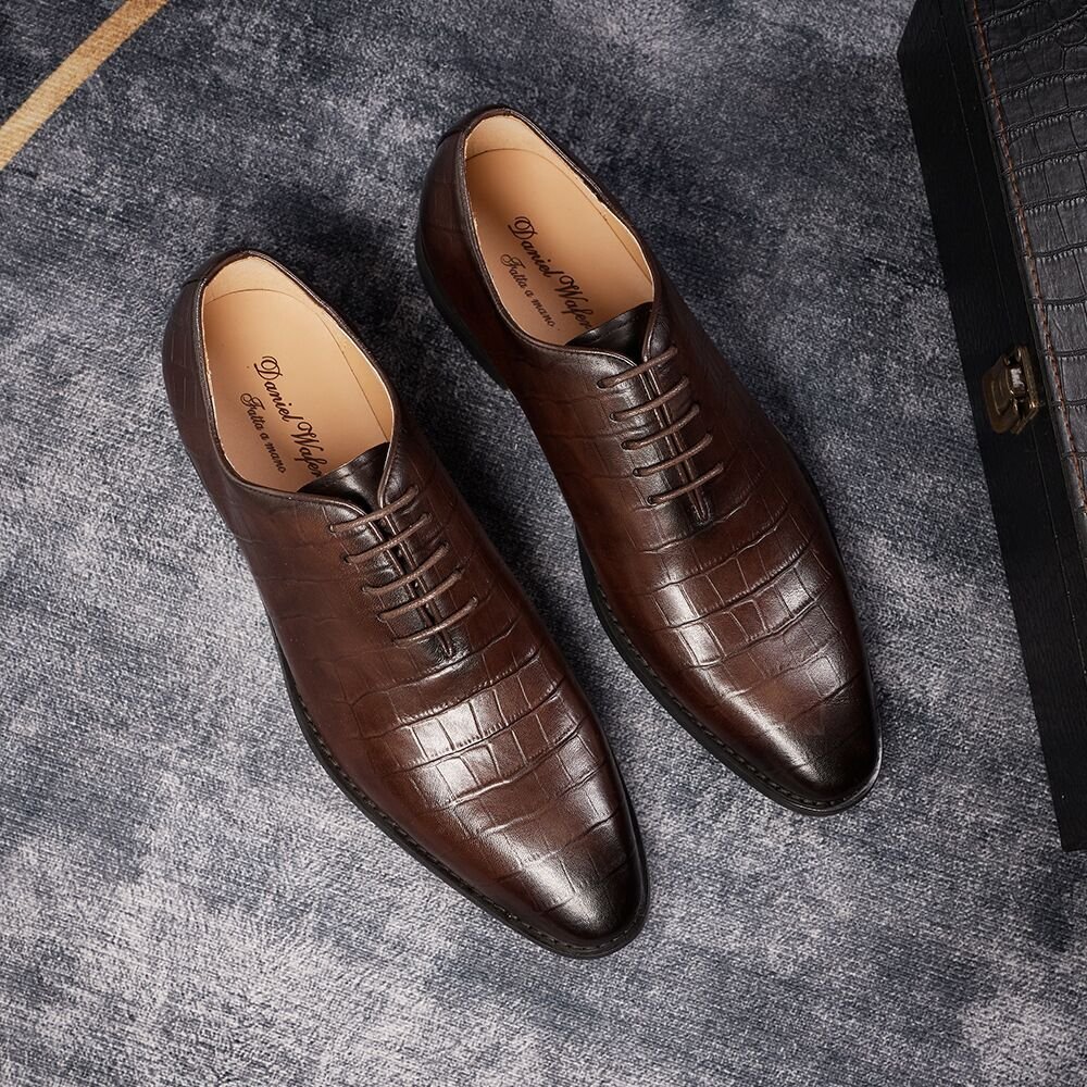 この靴は完全手作りのため、機械生産のような完璧な均一性を保つことが難しく、多少の個体差が生じる場合がございます。