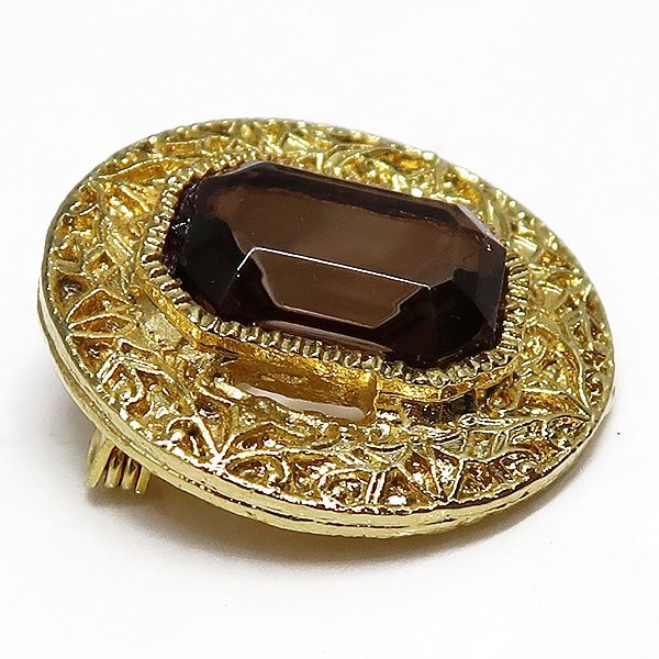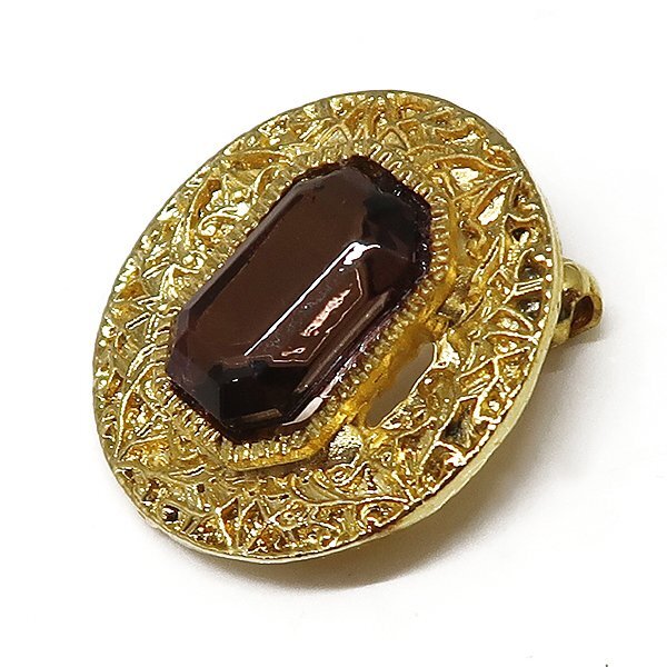 DKG★送料無料★ 美品 ヴィンテージ デザイン ブラウン パープル 紫 カラーストーン アンティーク レトロ ブローチ ⑱