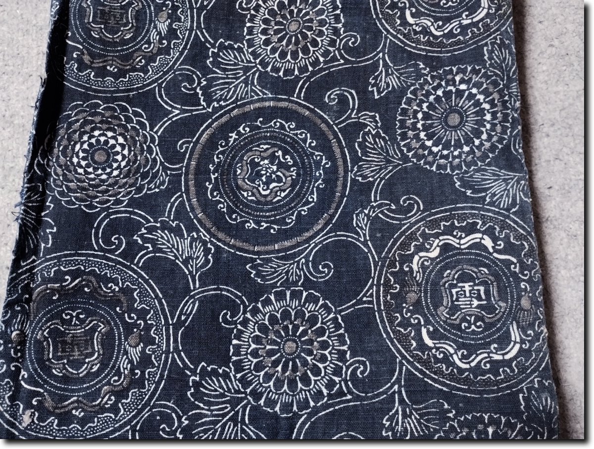 153 古布 藍染 木綿 型染 6幅 龍 雪 ふとん皮 natural Indigo dye 着物リメイク 襤褸 ぼろ BORO 刺し子 もんぺ シーツ 布団カバー 等に