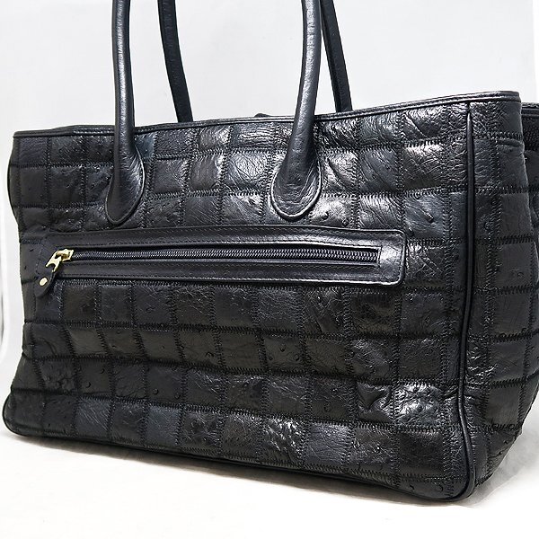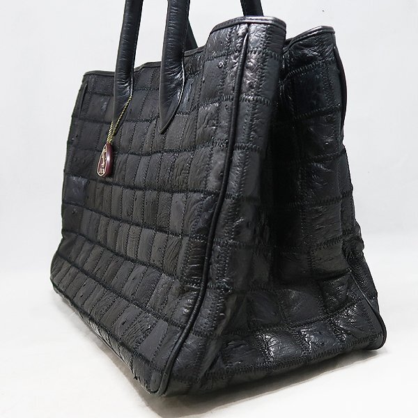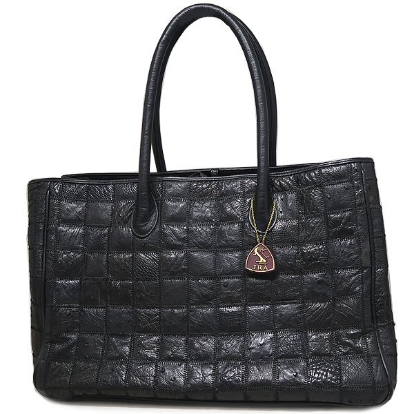 DKG★送料無料★ JRA認証 オーストリッチ ダチョウ革 パッチワーク エキゾチックレザー トートバッグ JRA ダチョウ 革 トート バッグ 黒