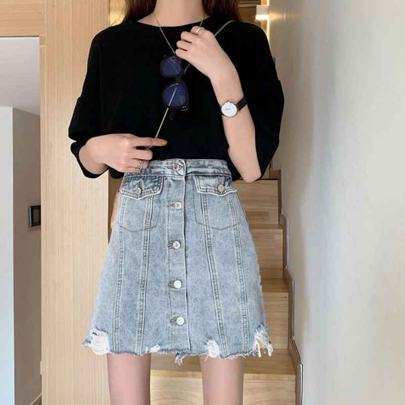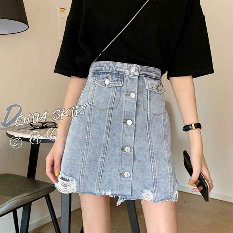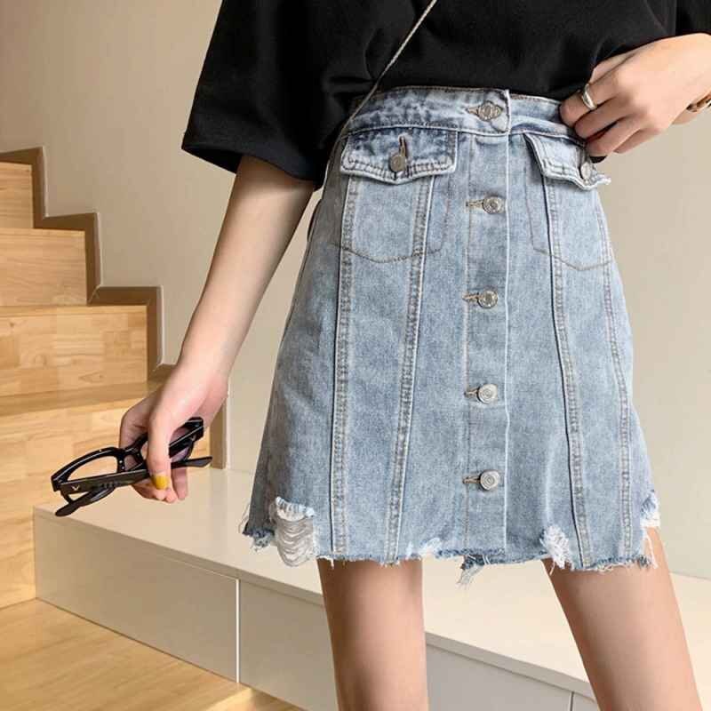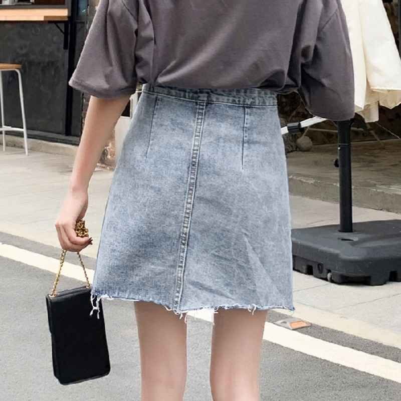 ダメージ加工 デニムスカート レディース ハイウエスト ミニスカート 着やせ S サックス