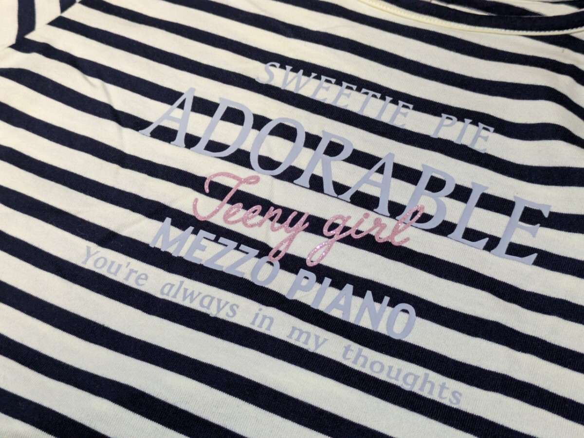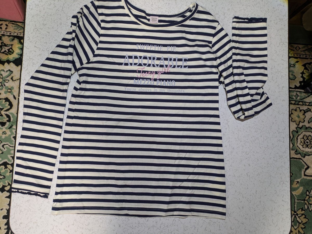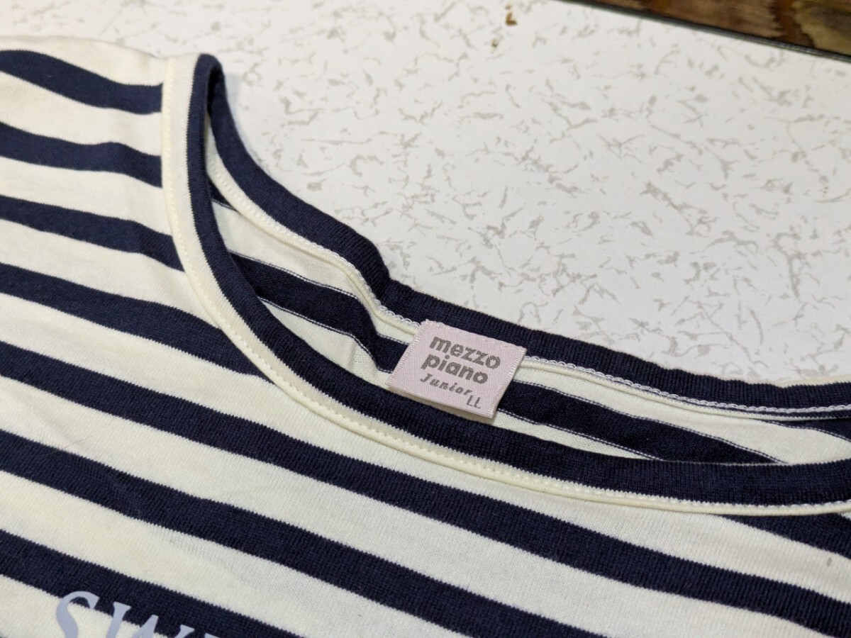 メゾピアノジュニア ロングスリーブTシャツ サイズLL 165cm ボーダー 袖フリル 綿100%