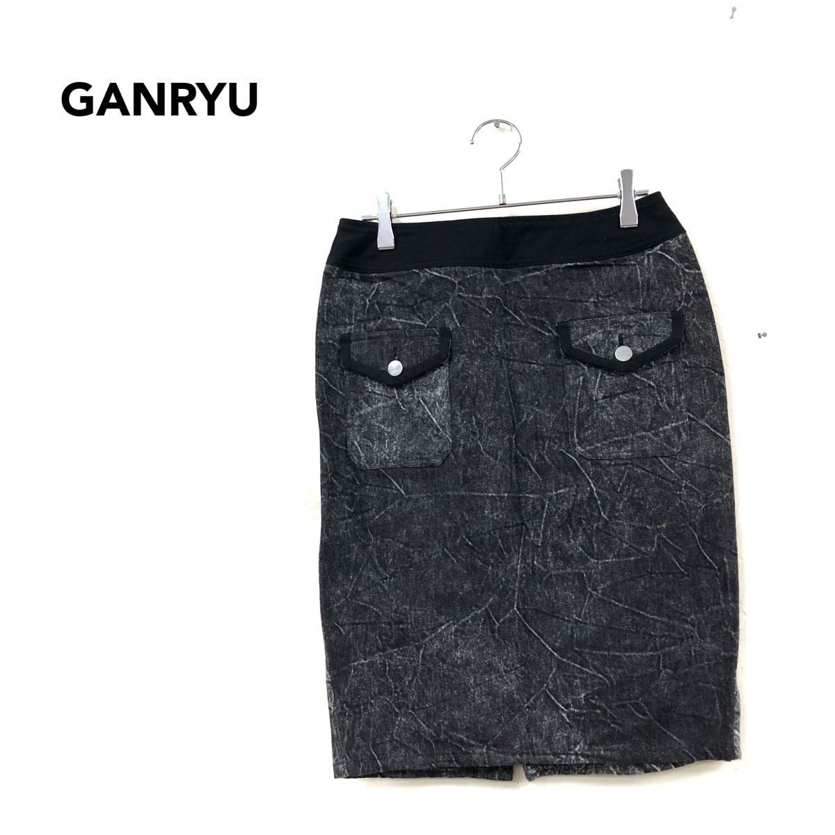 2O1479-D◆16ss◆ GANRYU ガンリュウ デニムスカート ウォッシュ加工 タイト ◆sizeS ブラック グレー コットン レディース