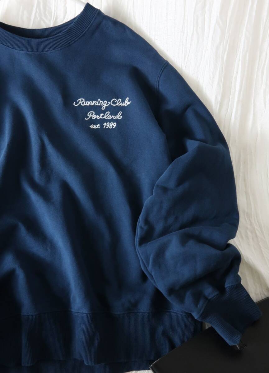 アメリカンカレッジのスクールスウェット風プルオーバーは、ゆったりとしたシルエットに、袖にもボリュームを持たせ、抜け感のあるサイズバランスに仕上げています。ボディカラーに合わせて配色にもこだわったロゴ刺繍をフロントに施しアクセントをプラスしました。