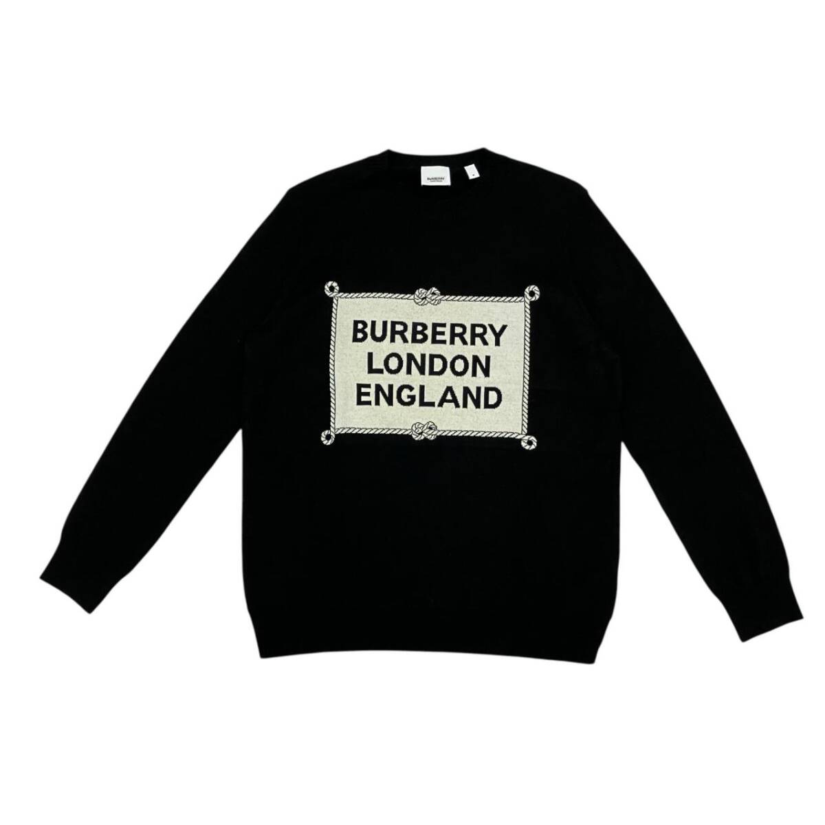 | BURBERRY バーバリー ボックスロゴ クルーネックセーター ブラック ウール メンズ ニット |