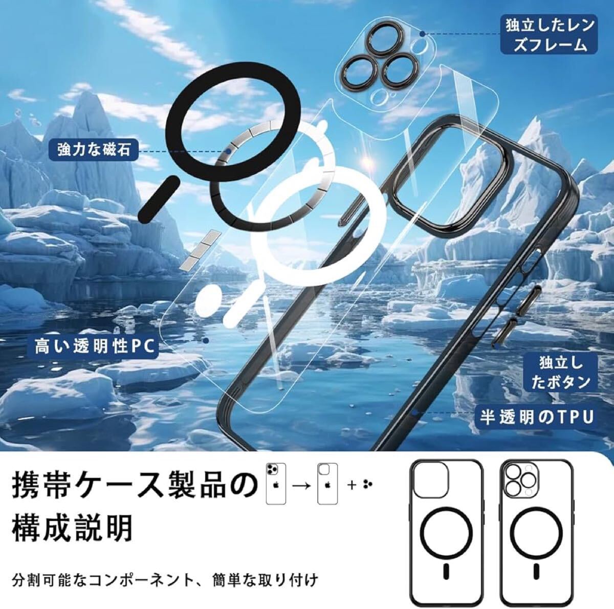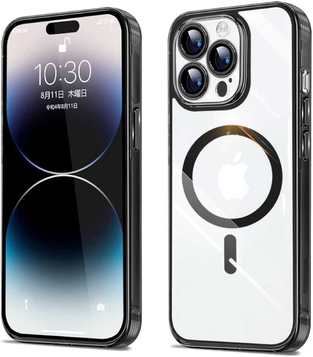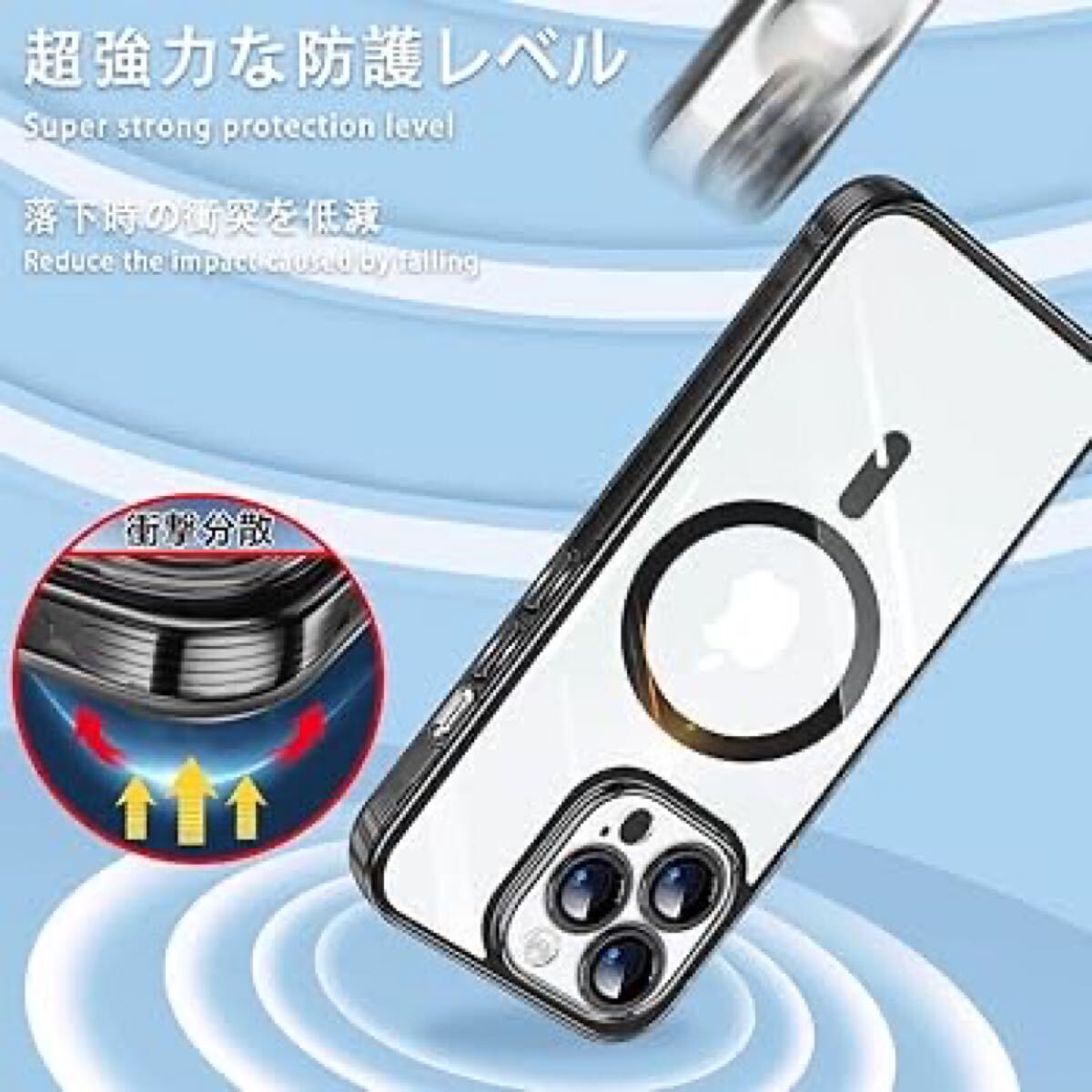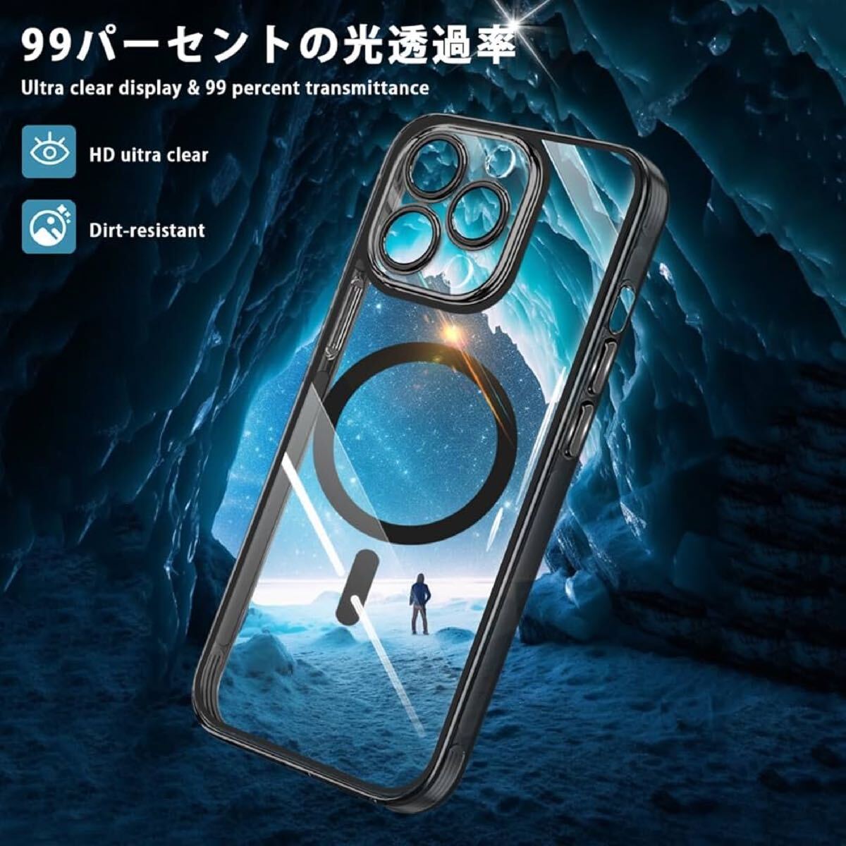 【Majiyana】iPhone 14Pro ケース クリア MagSafe対応 強力な磁石内蔵 耐衝撃 米軍MIL規格 PC+TPU素材で 耐久性 アイフォン 14Pro カバー 透明バック スマホケース マグセーフ対応 傷つき防止 落下防止 防塵 6.1インチ(ブラック)