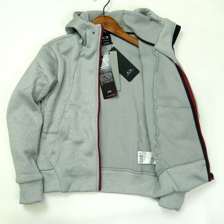 おすすめ! 新品 即決 定価8,690円 オークリー OAKLEY ジップ フーディージャケット キッズ140cm グレー パーカー 裏起毛 子供用【9043a】