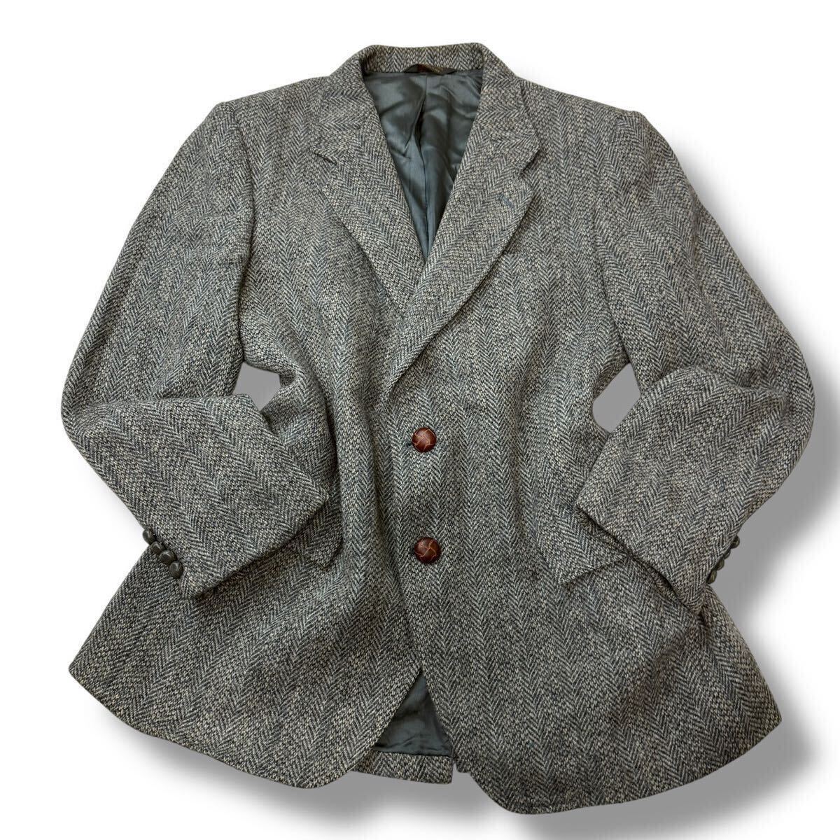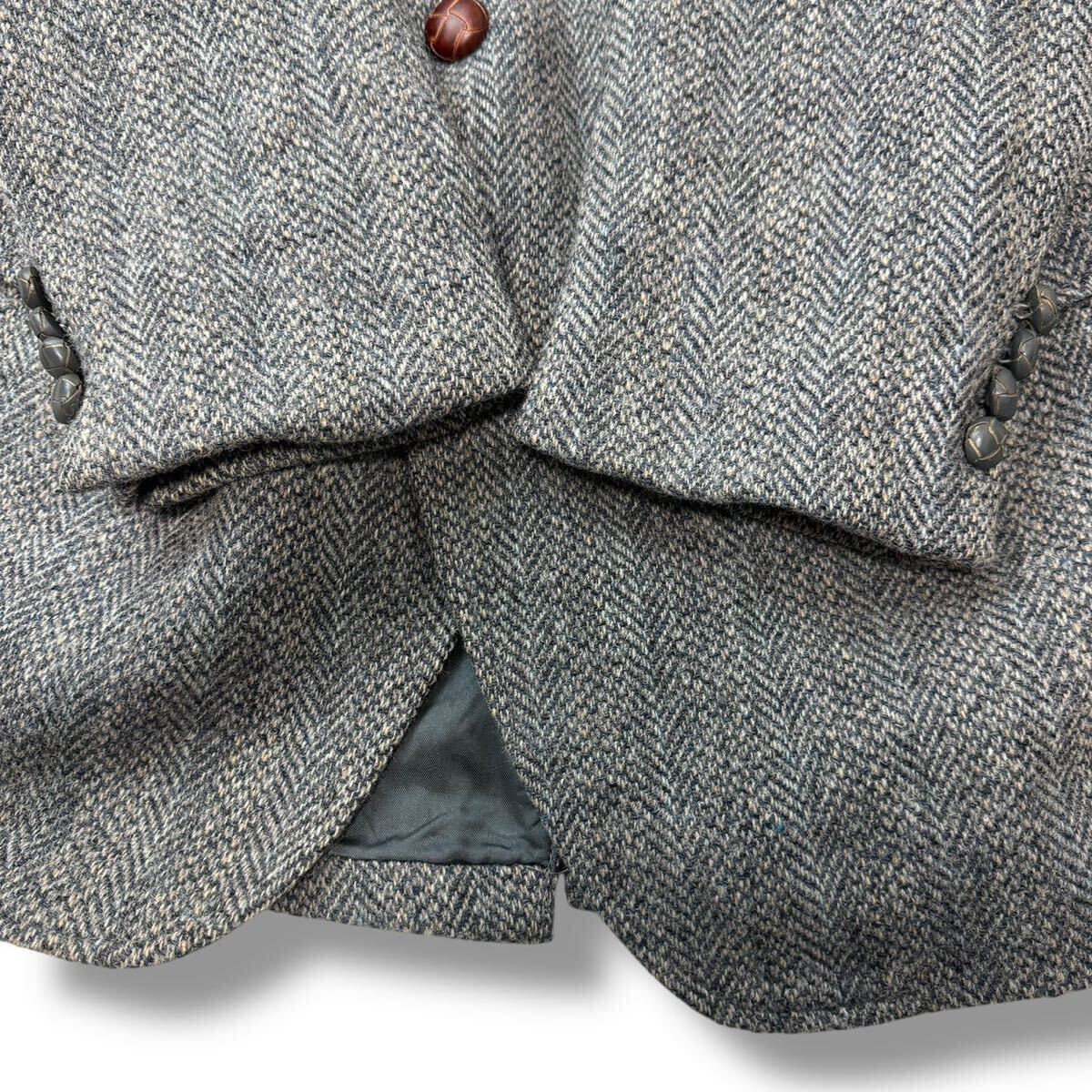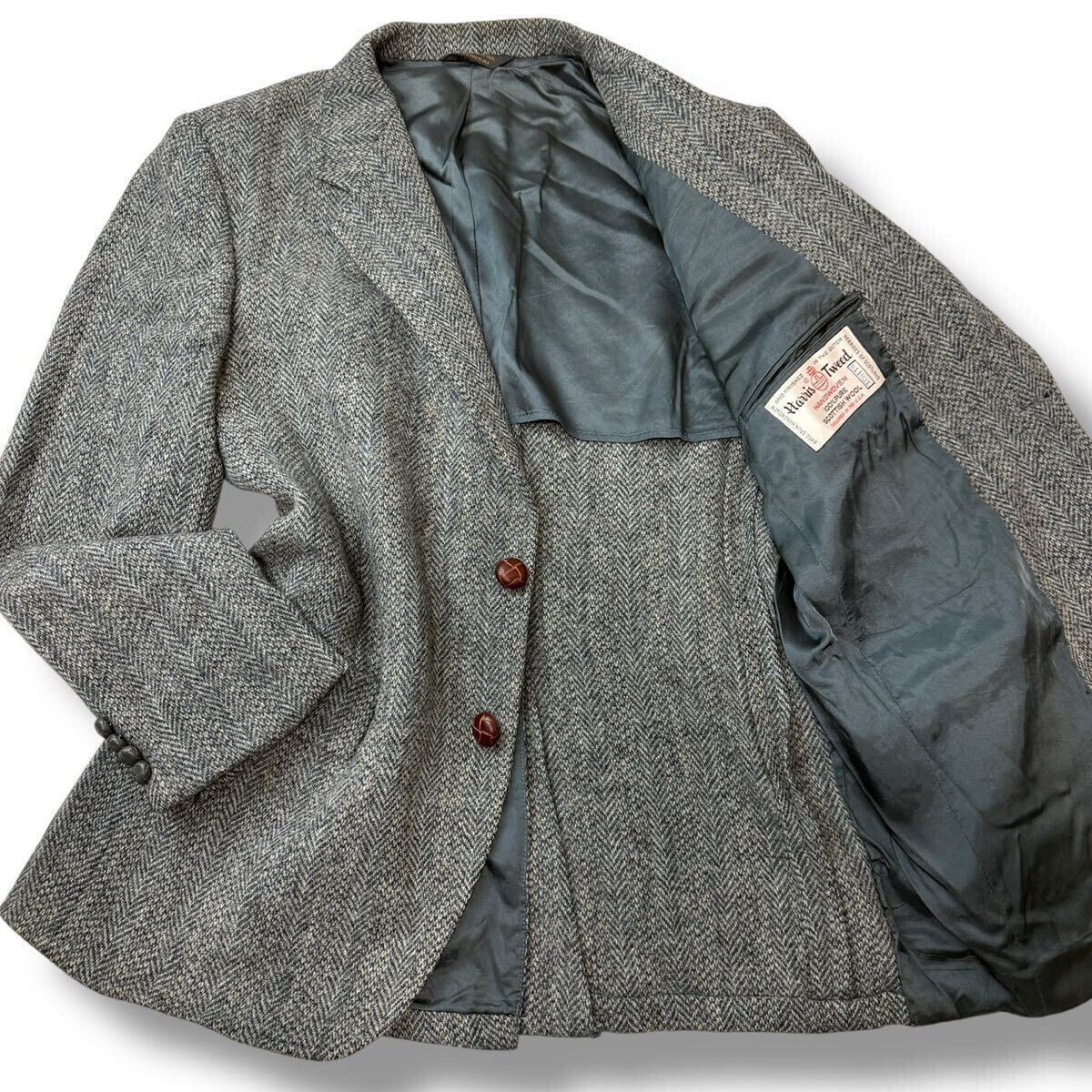 1103 希少XL相当◎ハリスツイード くるみボタン ヘリンボーン テーラードジャケット 2B グレー スコティッシュウール メンズ HARRIS TWEED