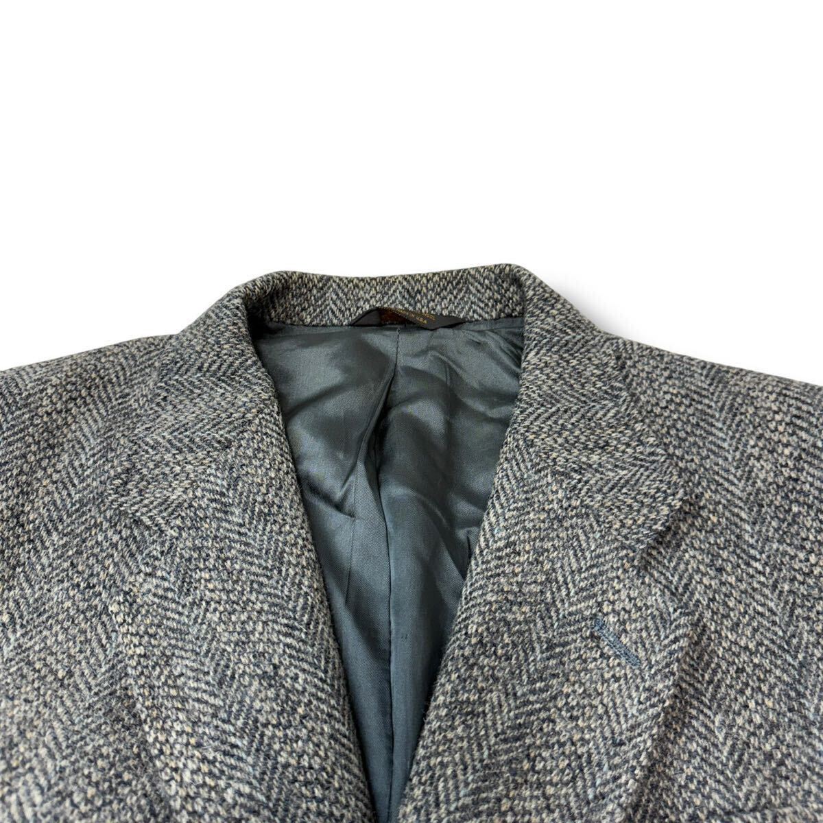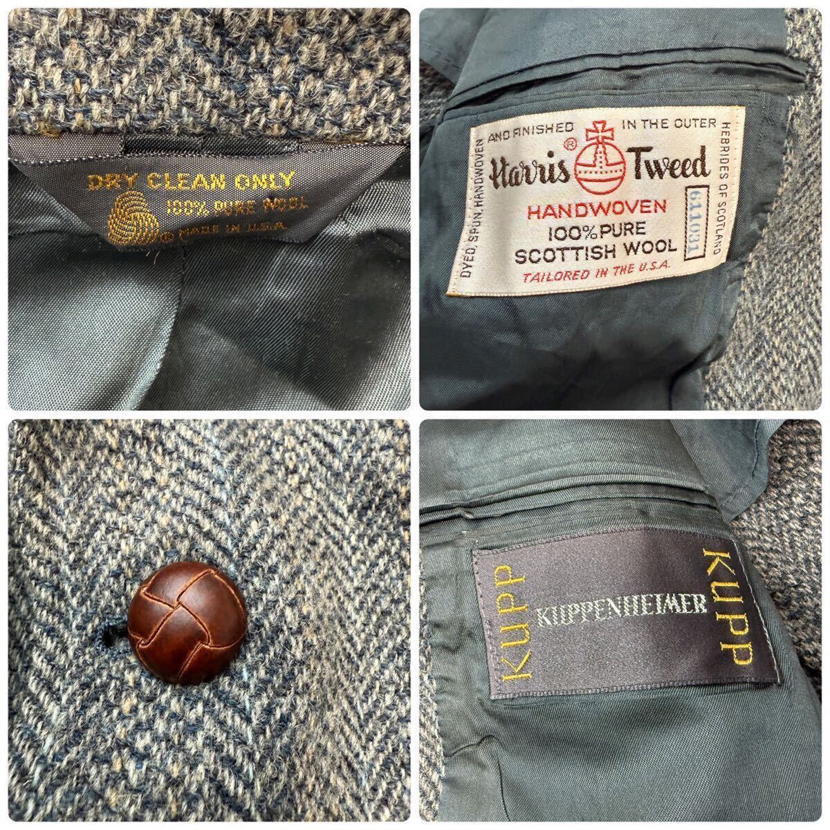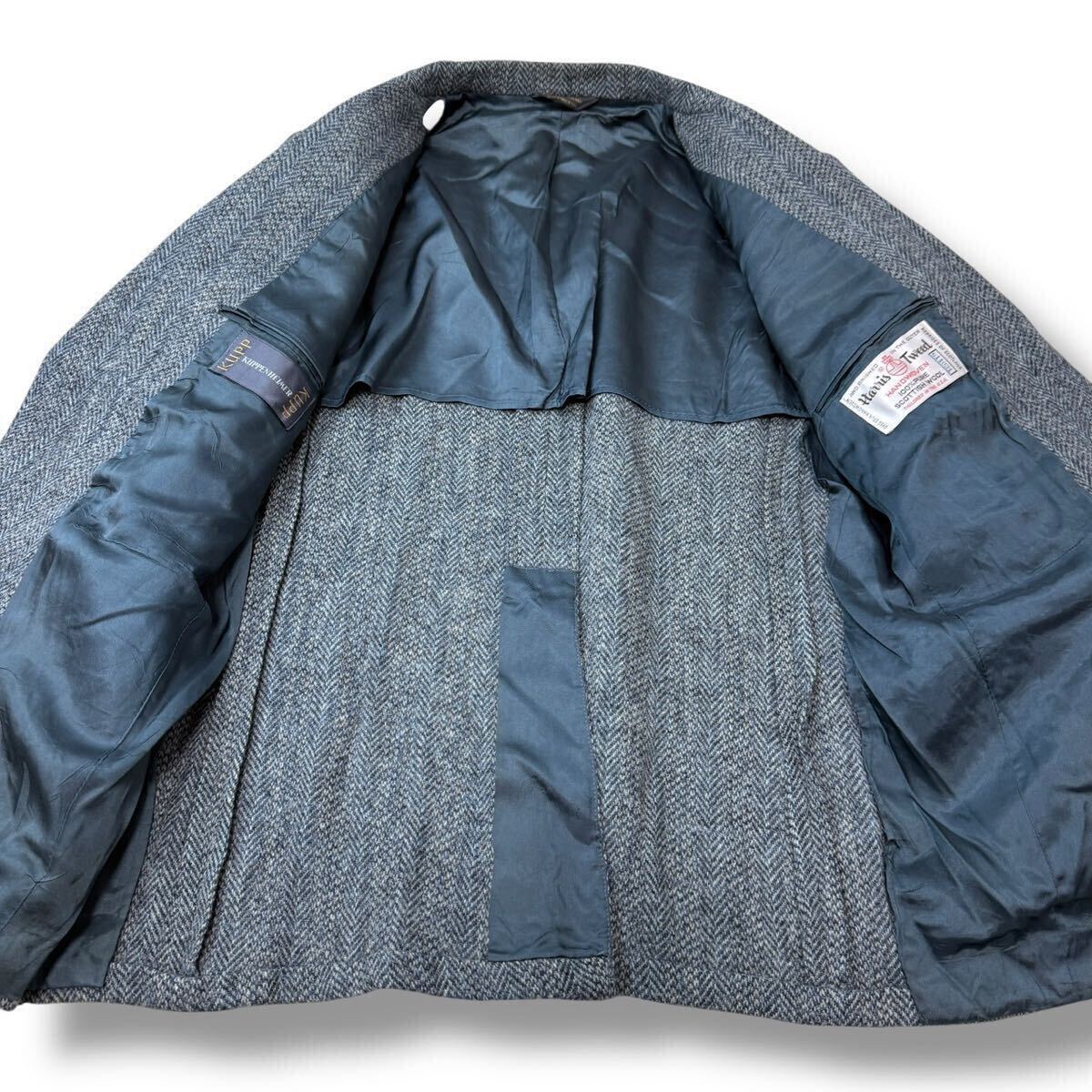 1103 希少XL相当◎ハリスツイード くるみボタン ヘリンボーン テーラードジャケット 2B グレー スコティッシュウール メンズ HARRIS TWEED