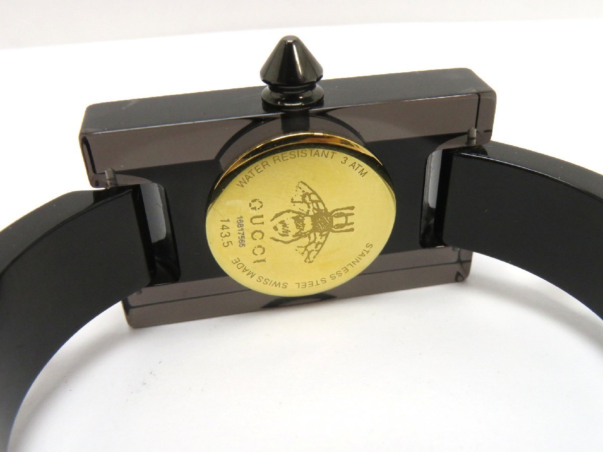 1円開始◆稼働◆ グッチ 143.5 バングルウォッチ ブラック クオーツ レディース 腕時計 AC069