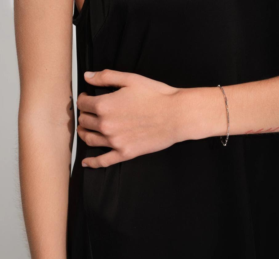 小さなスクエアカットが軽やかかつ繊細に連なったビリー・ブレスレットは、モダンでありながらタイムレスなアイテムです。