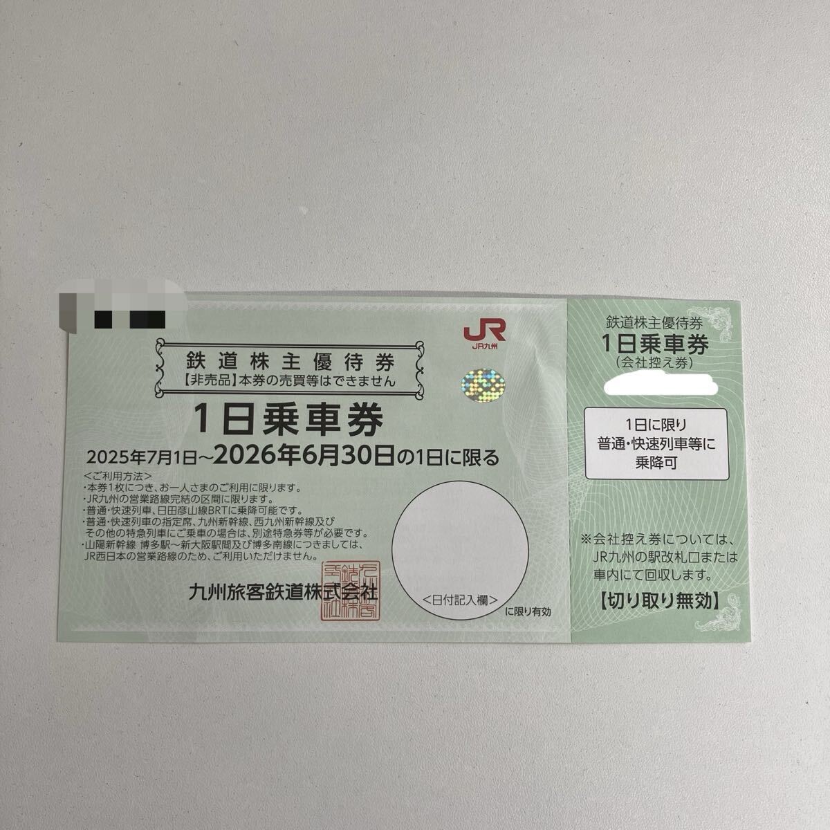 JR九州株主優待券 1日乗車券×1枚 【有効期限2025年7月1日~2026年6月30日まで】