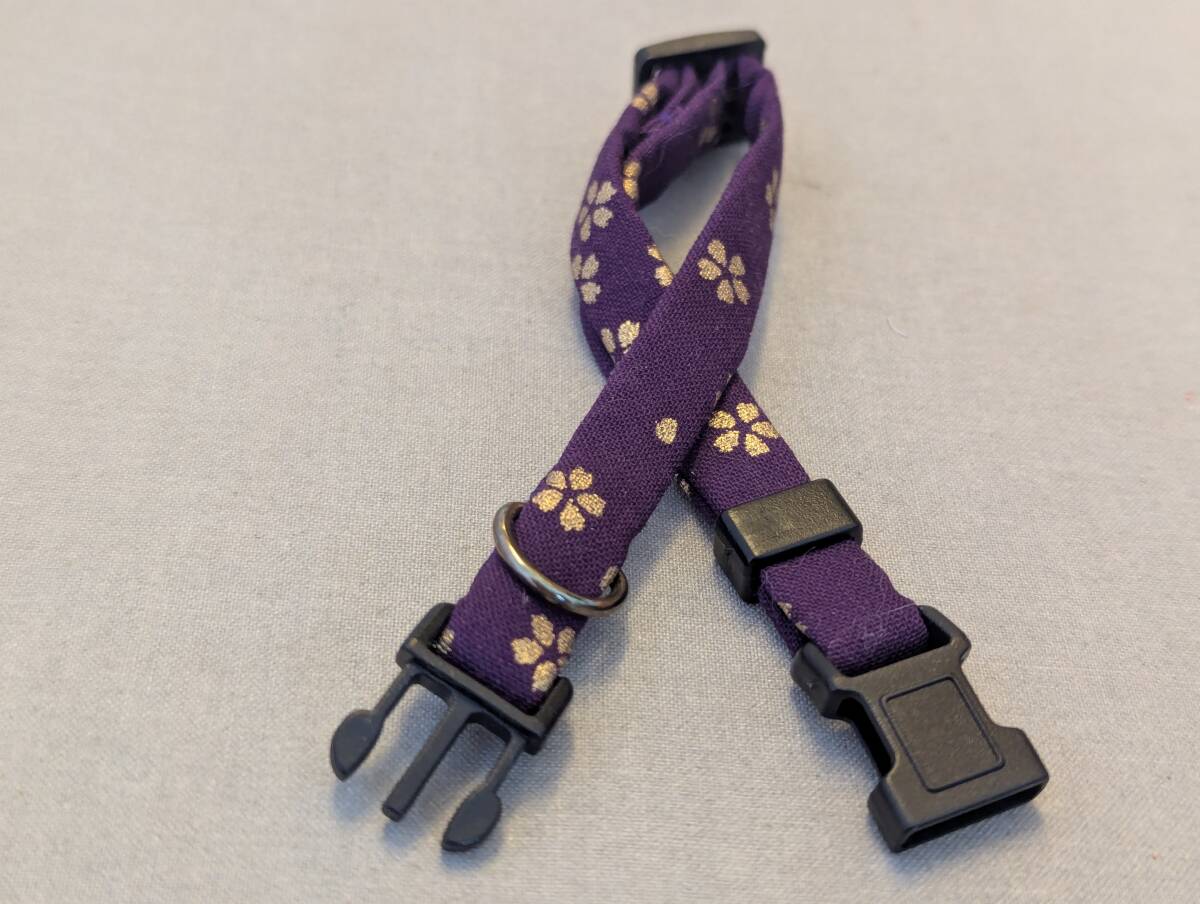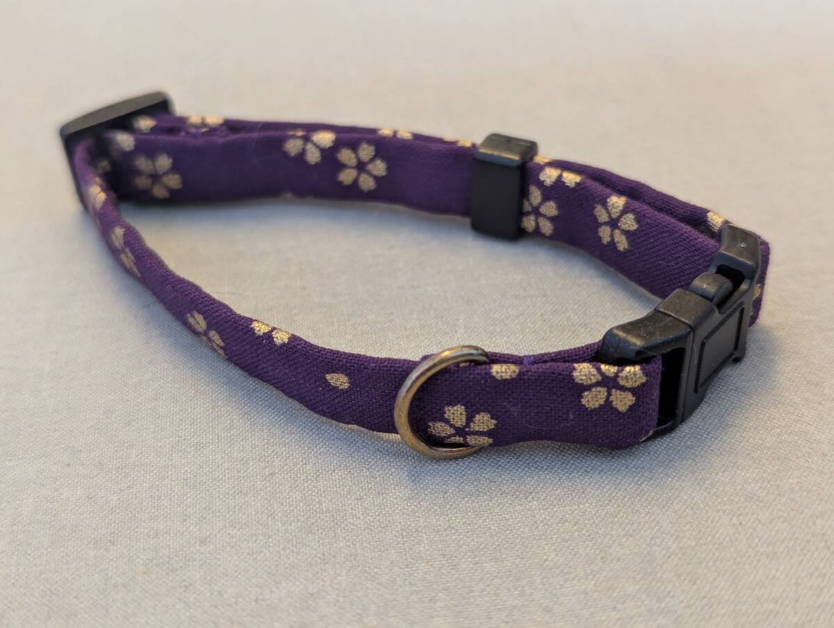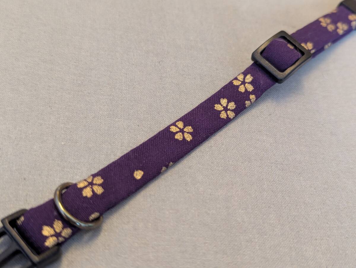 ★手作り京都作家物 猫 首輪 和柄★紫地金桜の花びら★ハンドメイド (セーフティタイプ) 即決700円