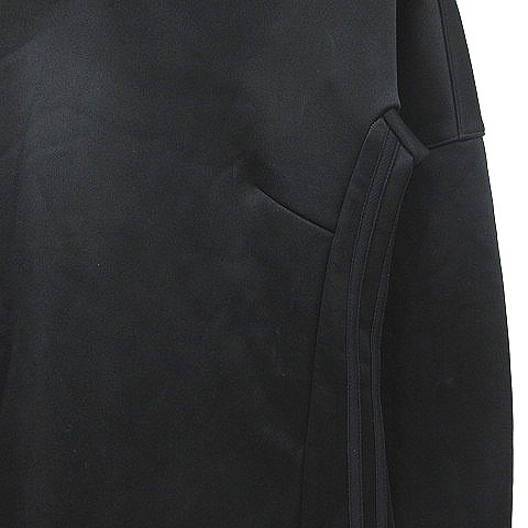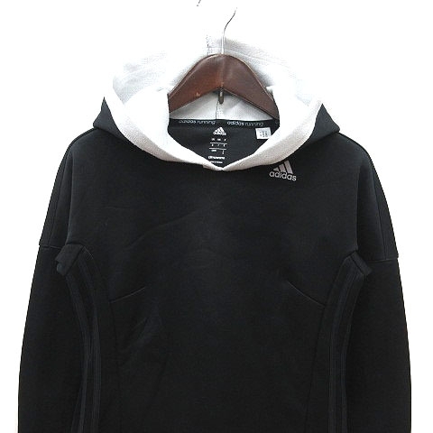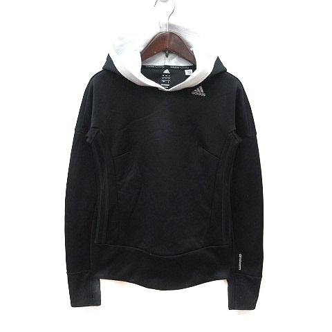 アディダス adidas スポーツウェア ジャージ パーカー プルオーバー ワンポイント ライン 長袖 S 黒 ブラック 白 ホワイト レディース