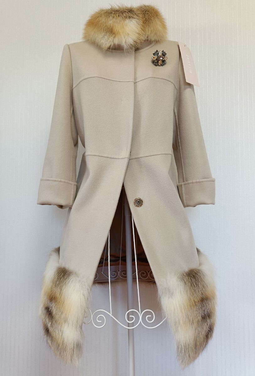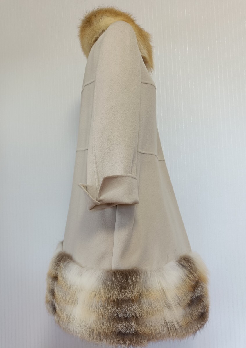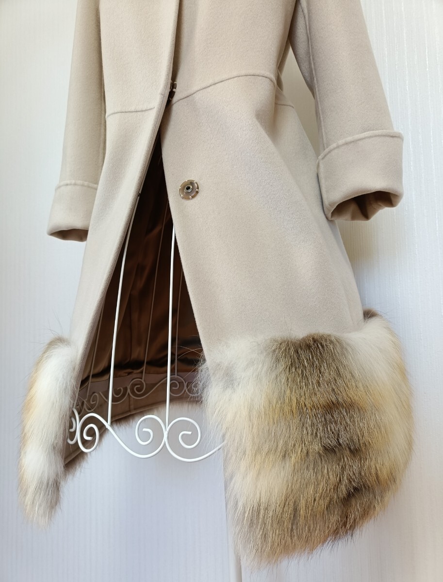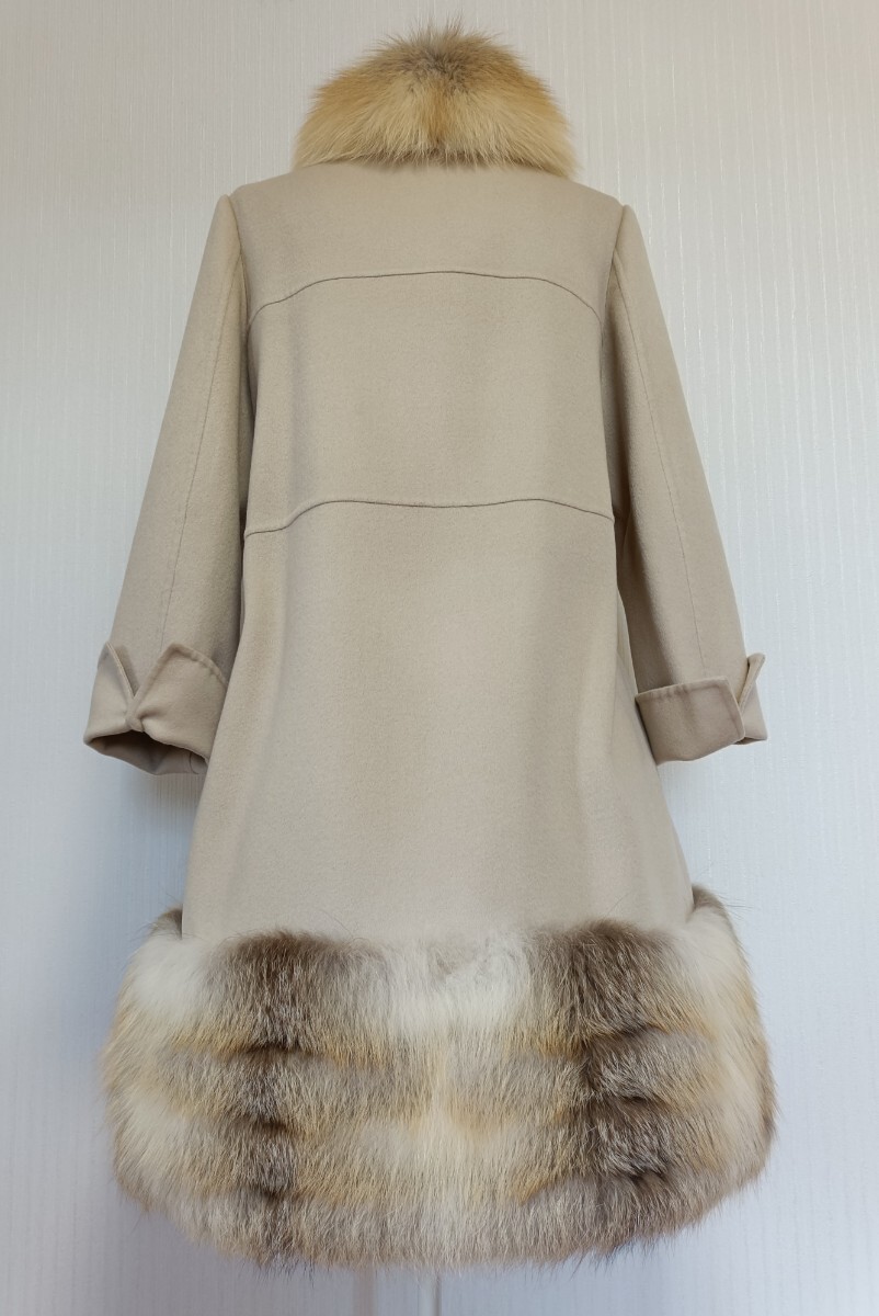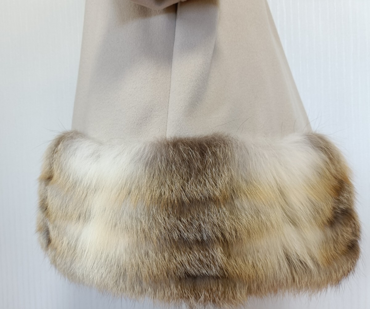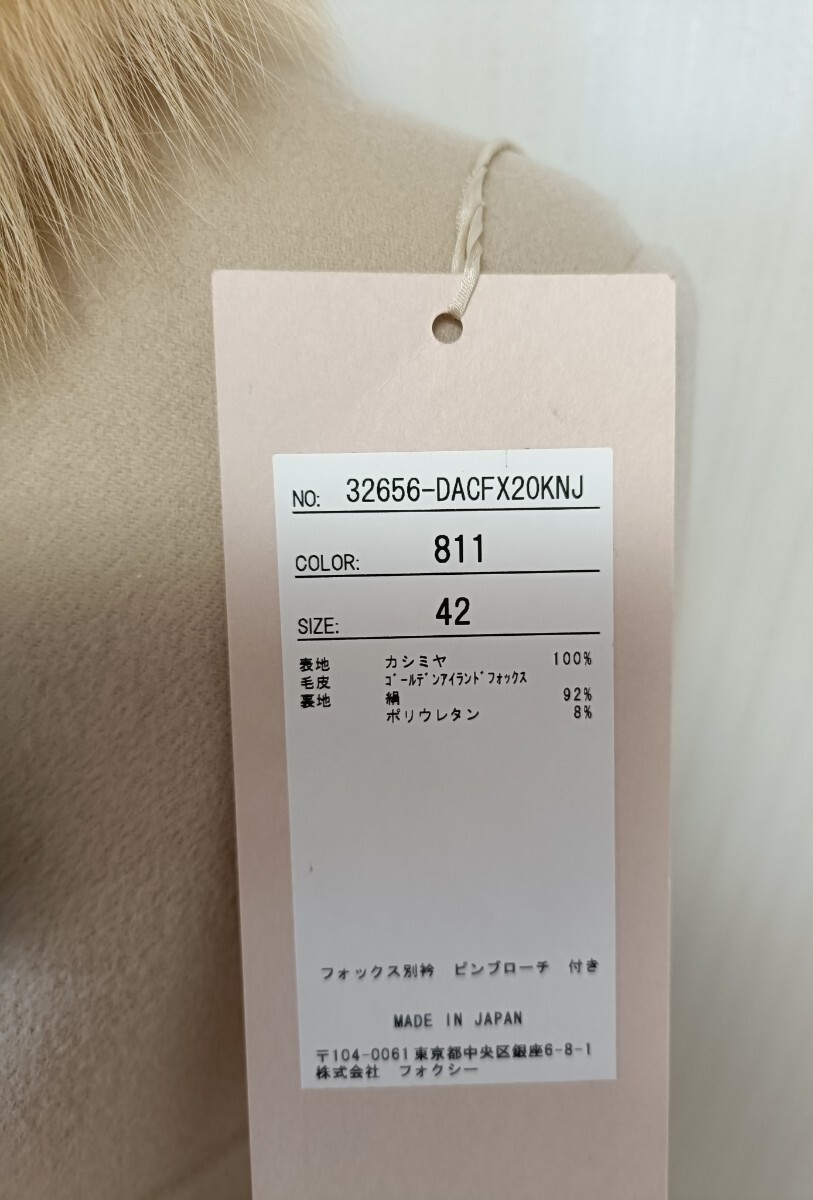 表地 カシミヤ100% 毛皮 ゴールデンアイランドフォックス 裏地 絹92% ポリウレタン8%