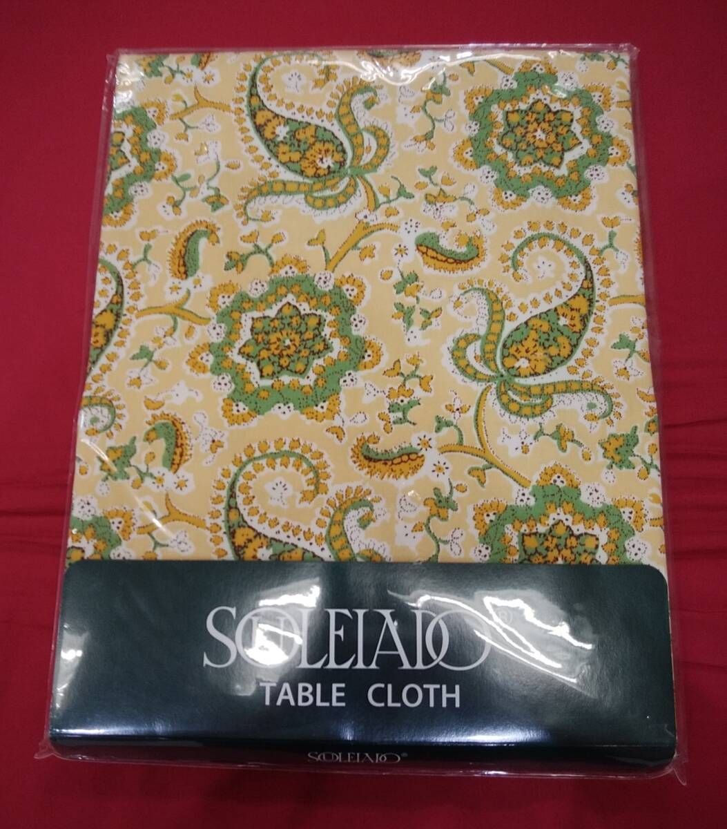 SOULEIADO ソレイアード テーブルクロス はっ水加工 4人掛テーブル用 黄 緑 ケララ(ペイズリー柄)約130×170cm