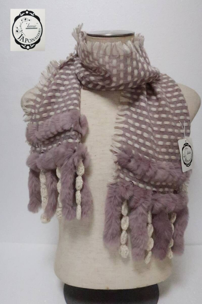 新品 新品 JAPONAISERIE ラビットファー付き ウールマフラー 格子状に編み込んだウールマフラーにラビットファーをあしらった、おしゃれで温かく可愛らしいマフラーです 素材 本体 ウール 100% ファー部分 レッキスラビット ボタン アクリル サイズ 約 22cm×約 134cm フリンジ部分 約 10cm 重さ 約 90g こちらの商品は新品・未使用品ですが展示使用品などのアウトレット商品ですので、紙タグなどが付属しない場合がございます 保管上に出来た、たたみジワや細かい傷などがある場合がございます 出品時に確認はしておりますが、見落としがある場合もありますので、神経質な方は入札をご遠慮下さい。 |