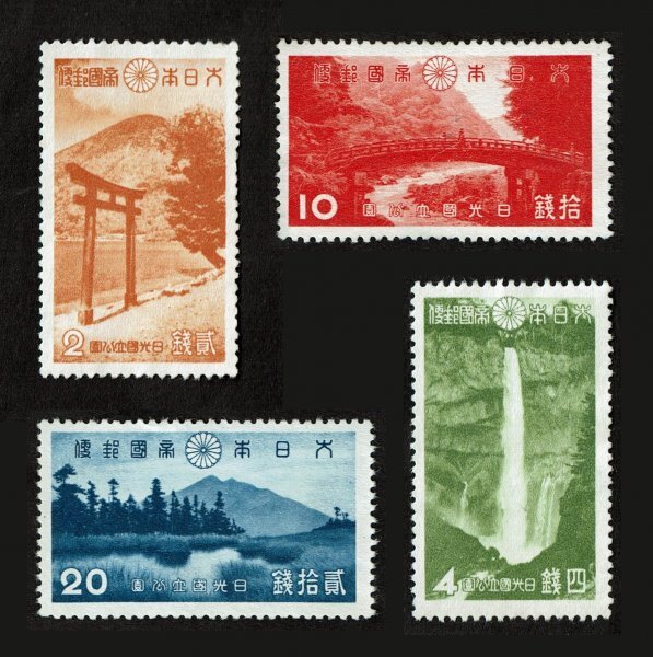 1938年 第1次国立公園切手 日光 4種完 糊落ち 未使用
