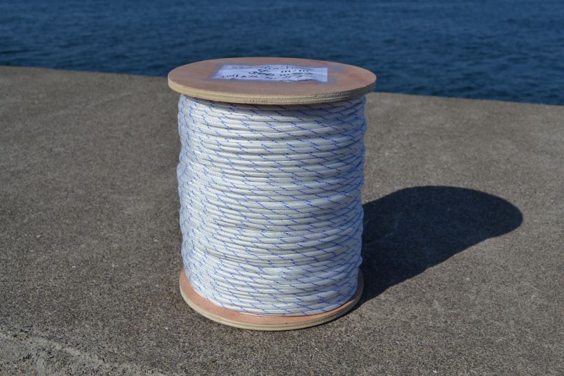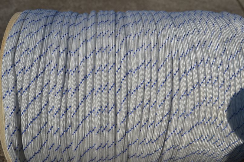★驚愕の安さと!!高品質最高ランクの原糸!強い!32打ち4mm300mNWブレイドエステルヨットロープ白青ボビン巻