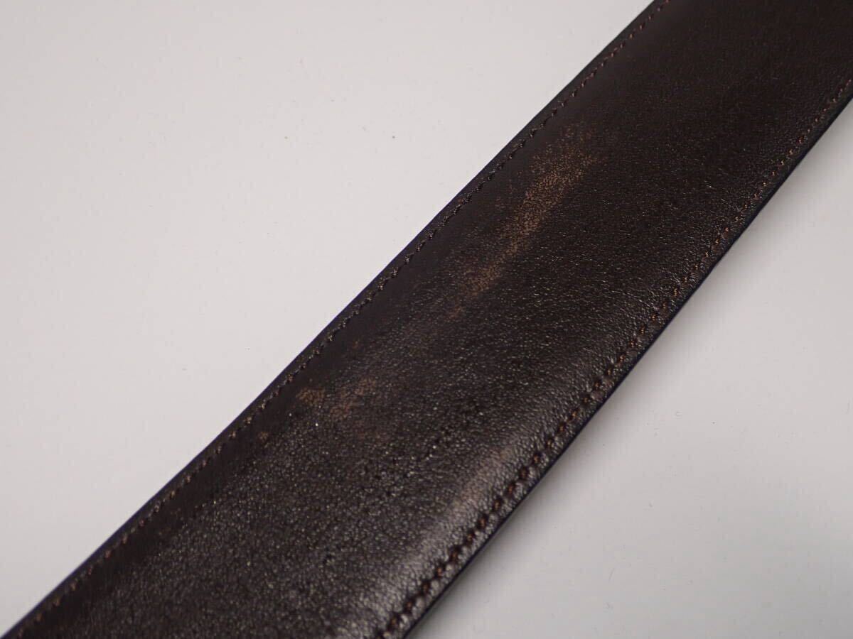 バックル先端から40cmぐらいのベルト裏面に6cm程度のスレがあります。9枚目の写真をご確認下さい。