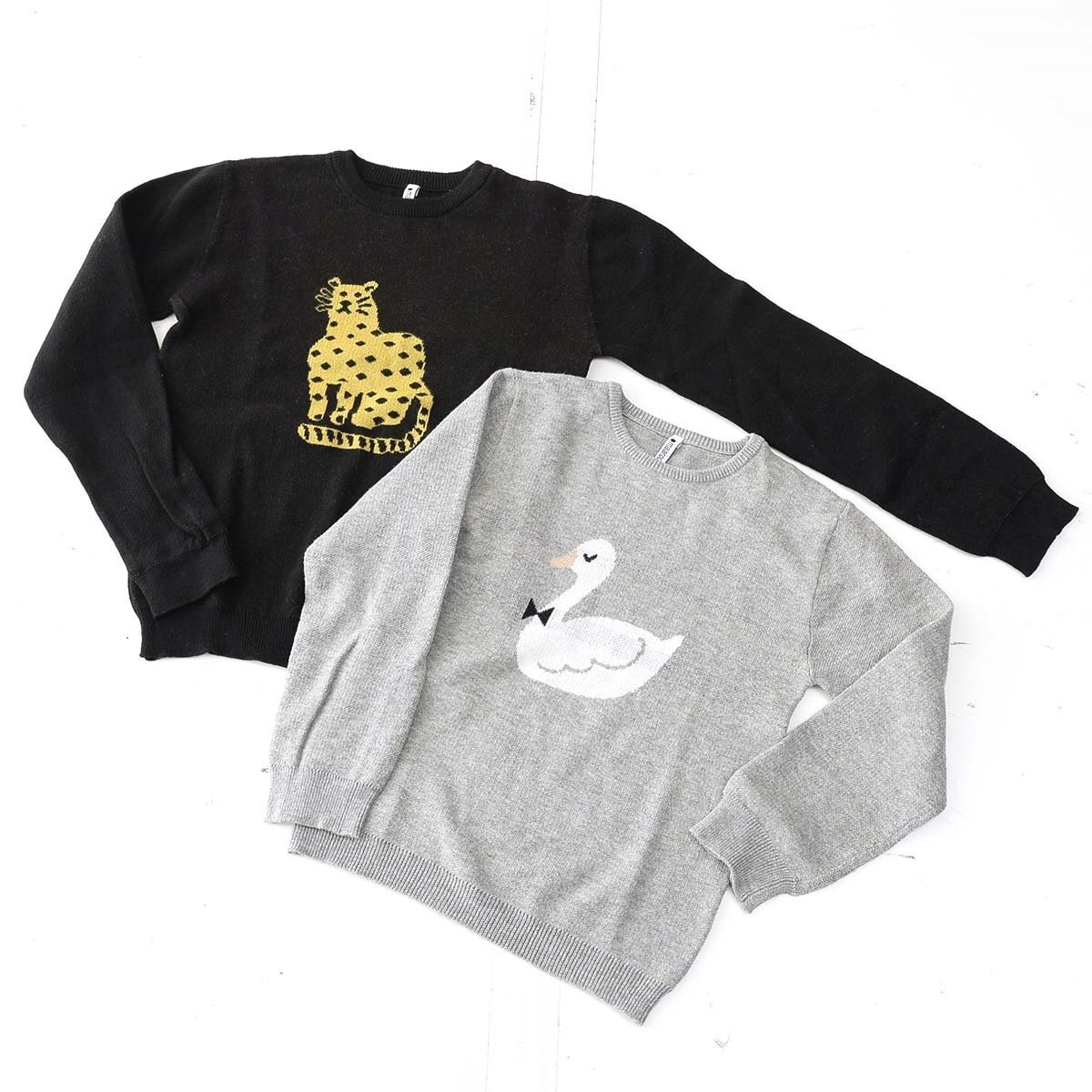 ◇511713 maarook マルーク セーター アニマル柄 ニットプルオーバー 2枚セット サイズS(110-120)/M(130-140)女の子 ブラック グレー