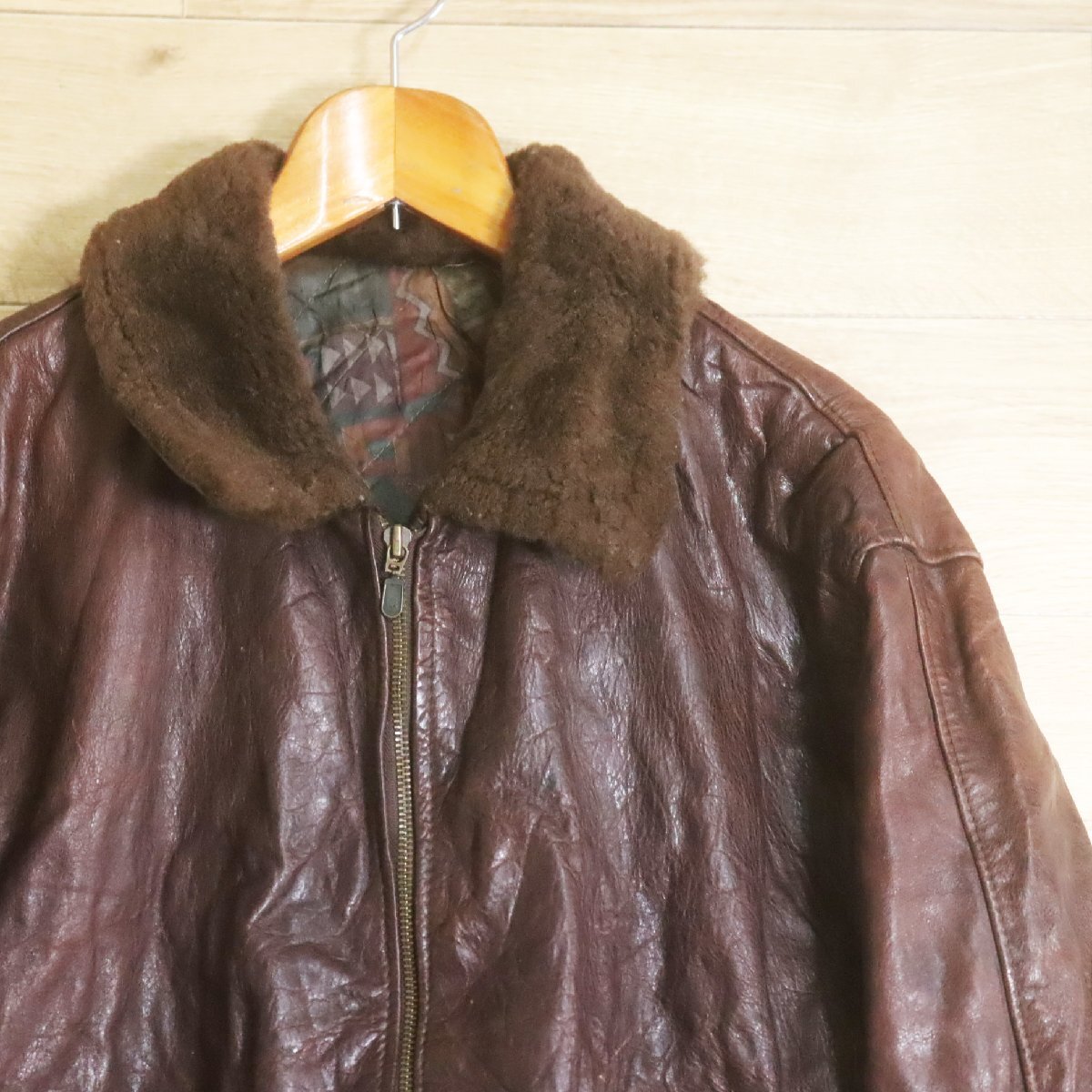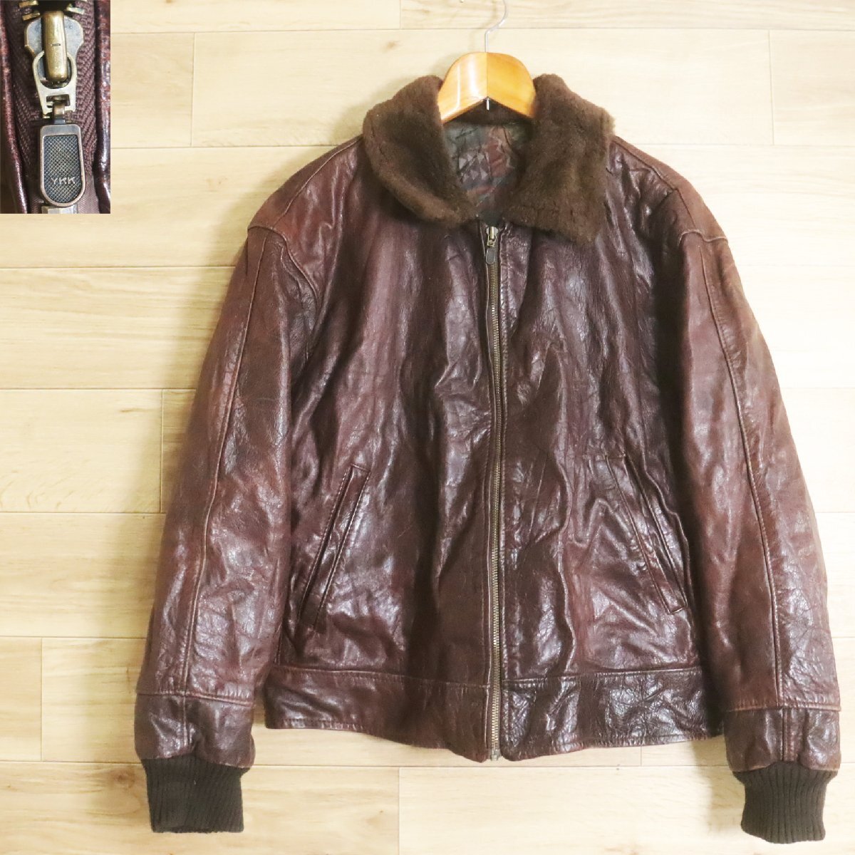K9S/R7.3-5 ビンテージ 襟ボア レザーフライトジャケット 本革 レザージャケット 革ジャン 皮ジャン Mサイズ相当 ヴィンテージ