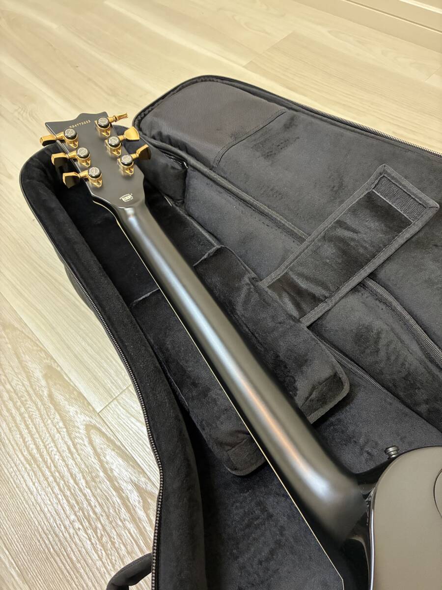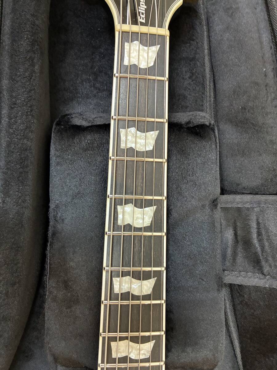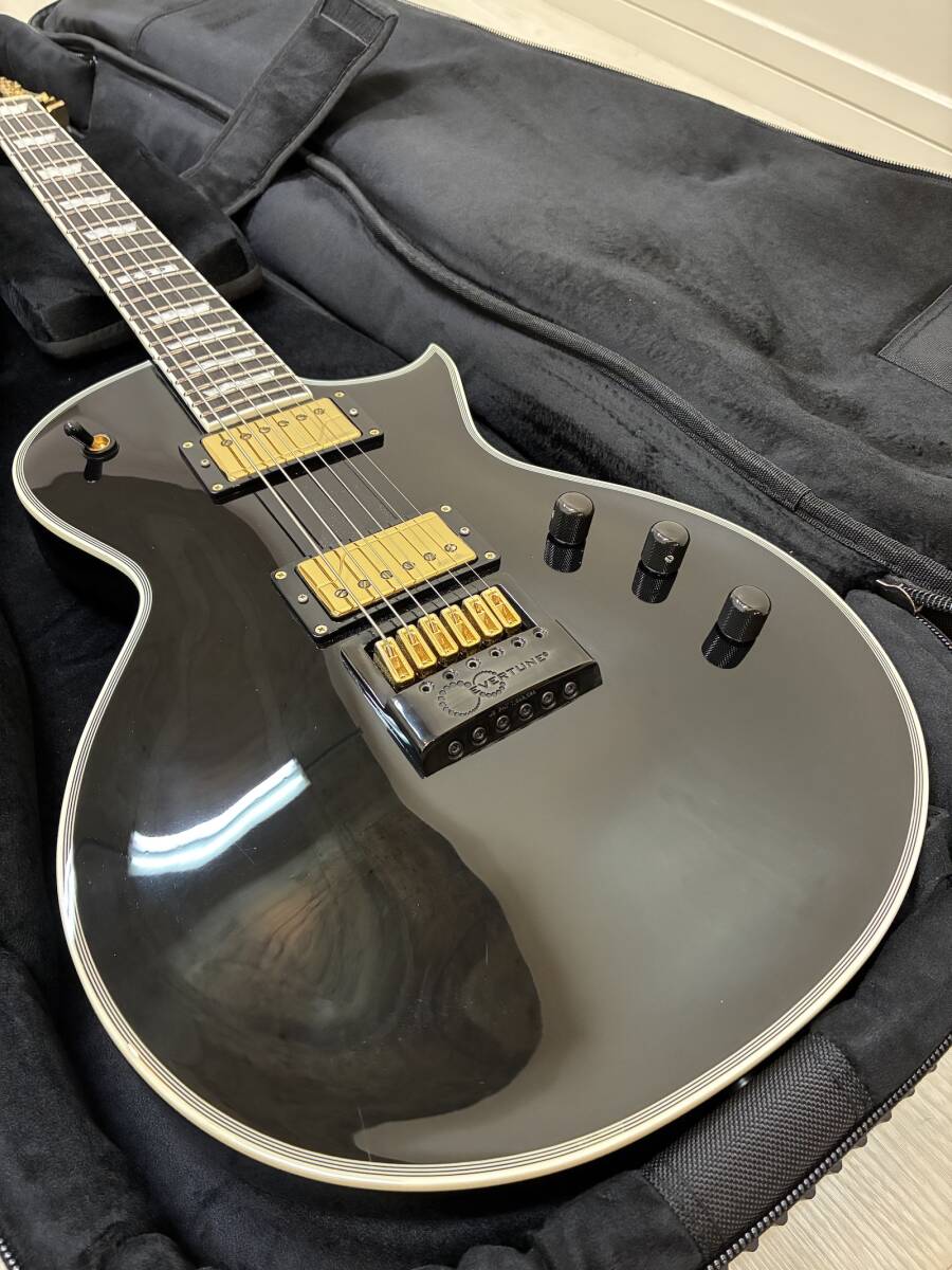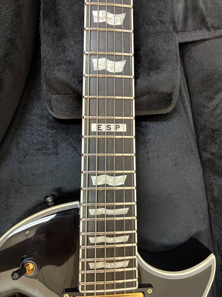 【極美品】ESP E-II ( イーツー ) / EC FT ET Black 定価 ¥379,500(税込) 商品をご覧いただき、ありがとうございます。 仕様に一目惚れし楽器店にて購入しましたが家で軽く弾く程度で出番が無く機材整理のため出品いたします。 軽微な演奏によるヘアラインのみで傷・打痕はございません。 指板も道管の詰まったツヤのある良い指板かと思います。 現状のセッティングはDrop A# 1~3弦はベンド可能な状態になります。 新品定価もかなり上がっておりますのでこの価格で購入できるのは中々無いと思いますので、大切に使用していただける方にお譲りしたく存じます。 当方ペット/喫煙なし NC/NRでお願いいたします。 SPEC: BODY : Mahogany w/Multi Ply Binding (Thicness 60mm) NECK : Mahogany GRIP SHAPE : Thin U FINGERBOARD : Ebony, w/White Binding RADIUS : 305R SCALE : 628mm NUT (WIDTH) : Bone(42mm) INLAY : Flag, 12th at ESP FRET : XJ, SS, 22frets CONSTRUCTION : Set-thru TUNER : OTOH SG301-04 MG-T BRIDGE : EVERTUNE F-model PICKUPS : (Neck)Fishman Fluence Classic, (Bridge)Fishman Fluence Classic PARTS COLOR : Black&Gold CONTROLS : Bridge Volume, Neck Volume(w/Pull for Voice 3), Master Tone(w/Pull for Voice 1), Toggle PU Selector 種類...レスポールタイプ カラー...ブラック系