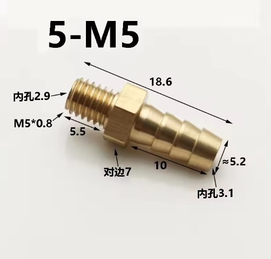 真鍮 ニップル 長さ: M5x0.8 to 5mm 5個 水冷却 燃料 ノズル タケノコ ニップル エア ホース