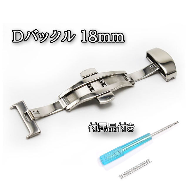 プッシュ式Dバックル 両開き(バタフライ)タイプ シルバー 18mm