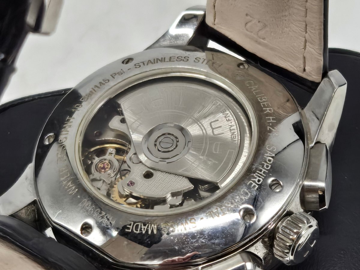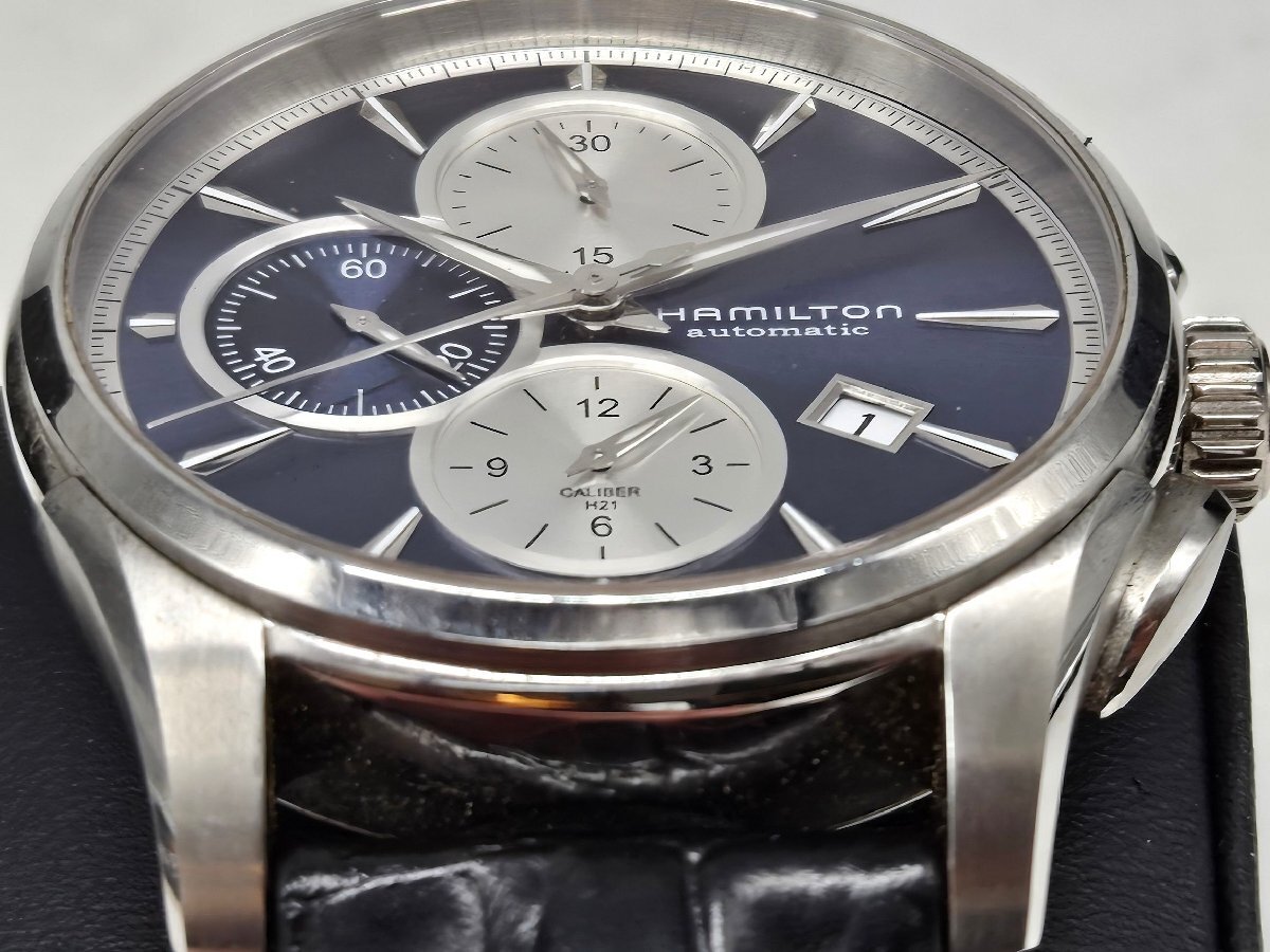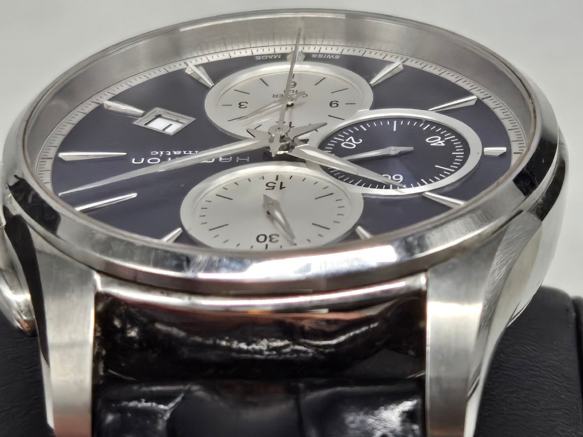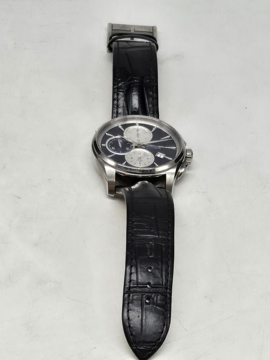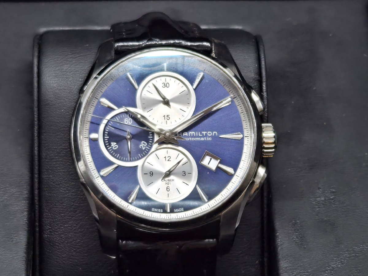 Θ良品【ハミルトン HAMILTON ジャズマスター 自動巻き クロノグラフ 裏スケルトン H32596741 腕時計 メンズ ネイビー 中古】HM2587