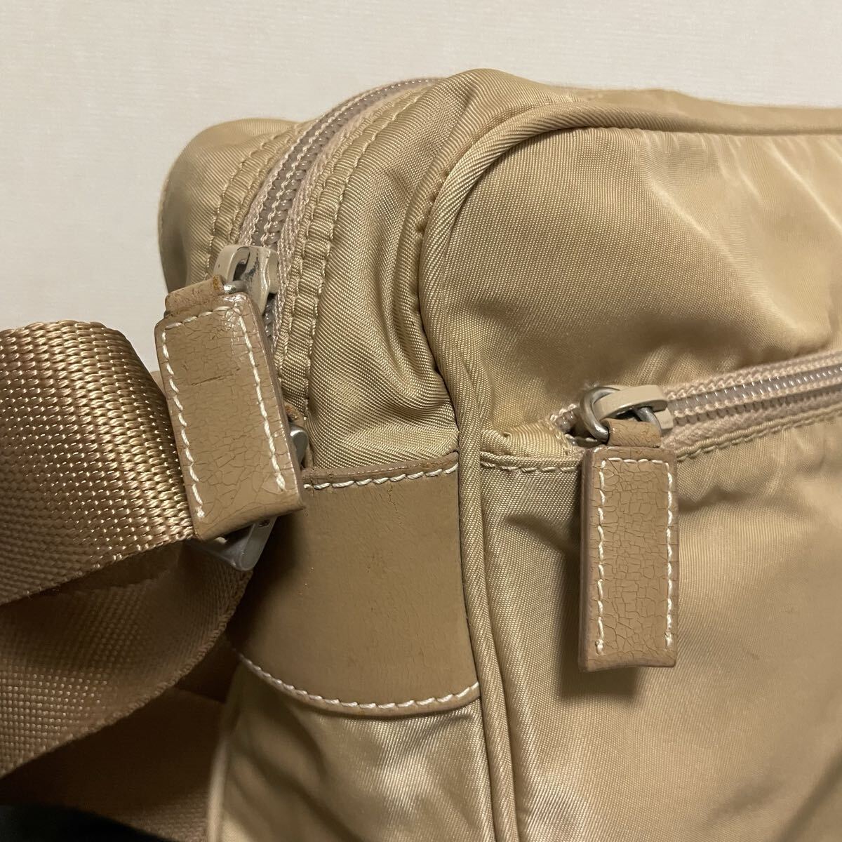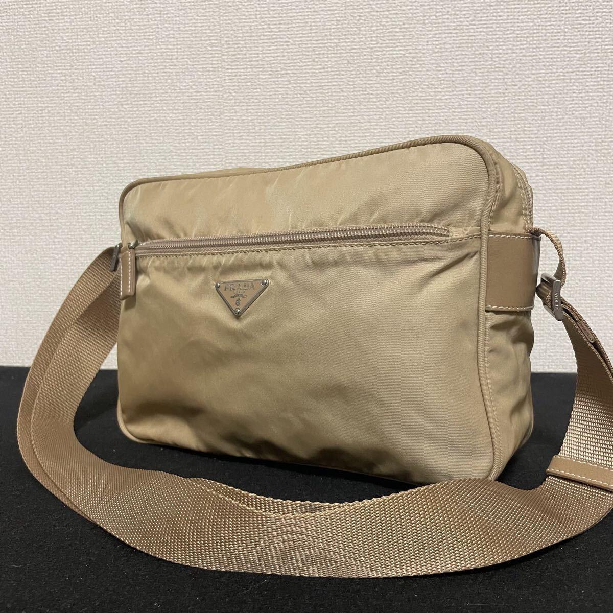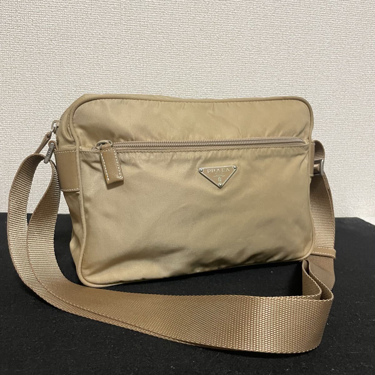 1円スタート! PRADA プラダ ナイロン ショルダーバッグ カメラバッグ テスート 三角ロゴ 斜め掛け ベージュ ポコノ クロスボディ
