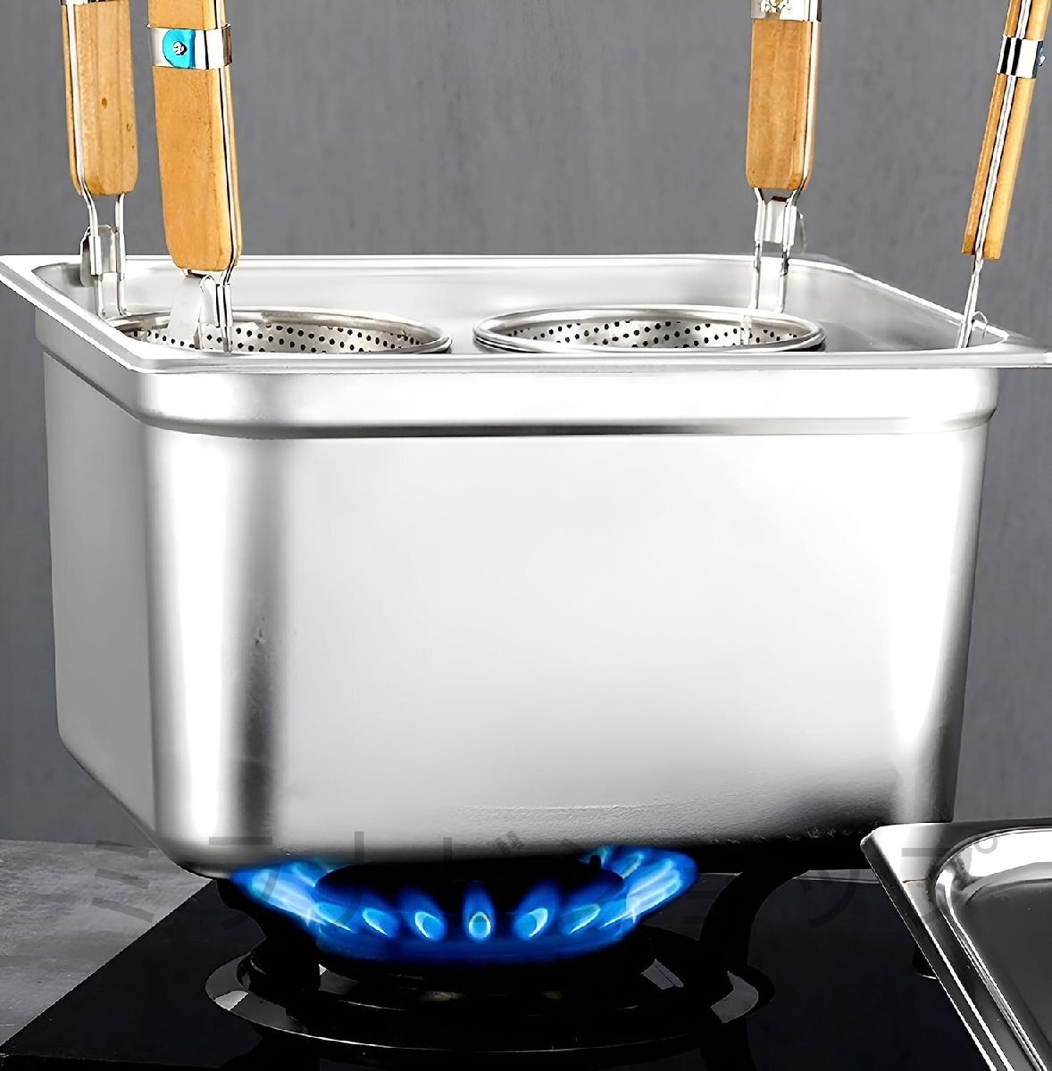 そばゆで釜は、おでんやそばの調理に最適な鍋です。この鍋はガス火やIHクッカーに対応しており、簡単に美味しい料理を作ることができます。さらに、スープ鍋としても利用でき、シチューや煮込み料理など、幅広い料理に活用することができます。