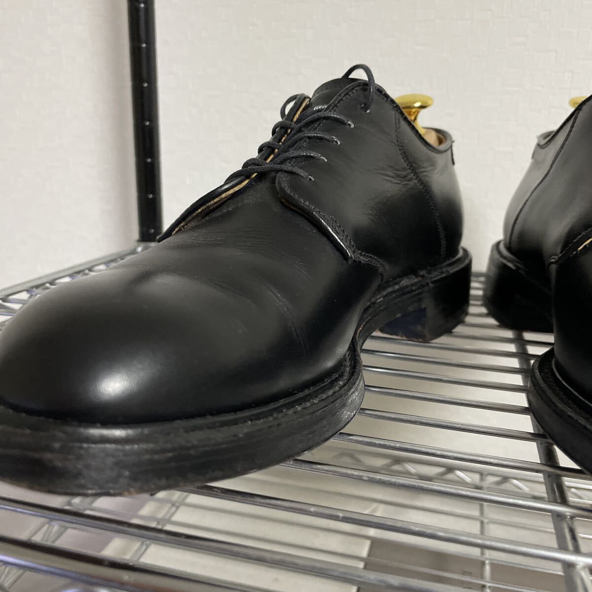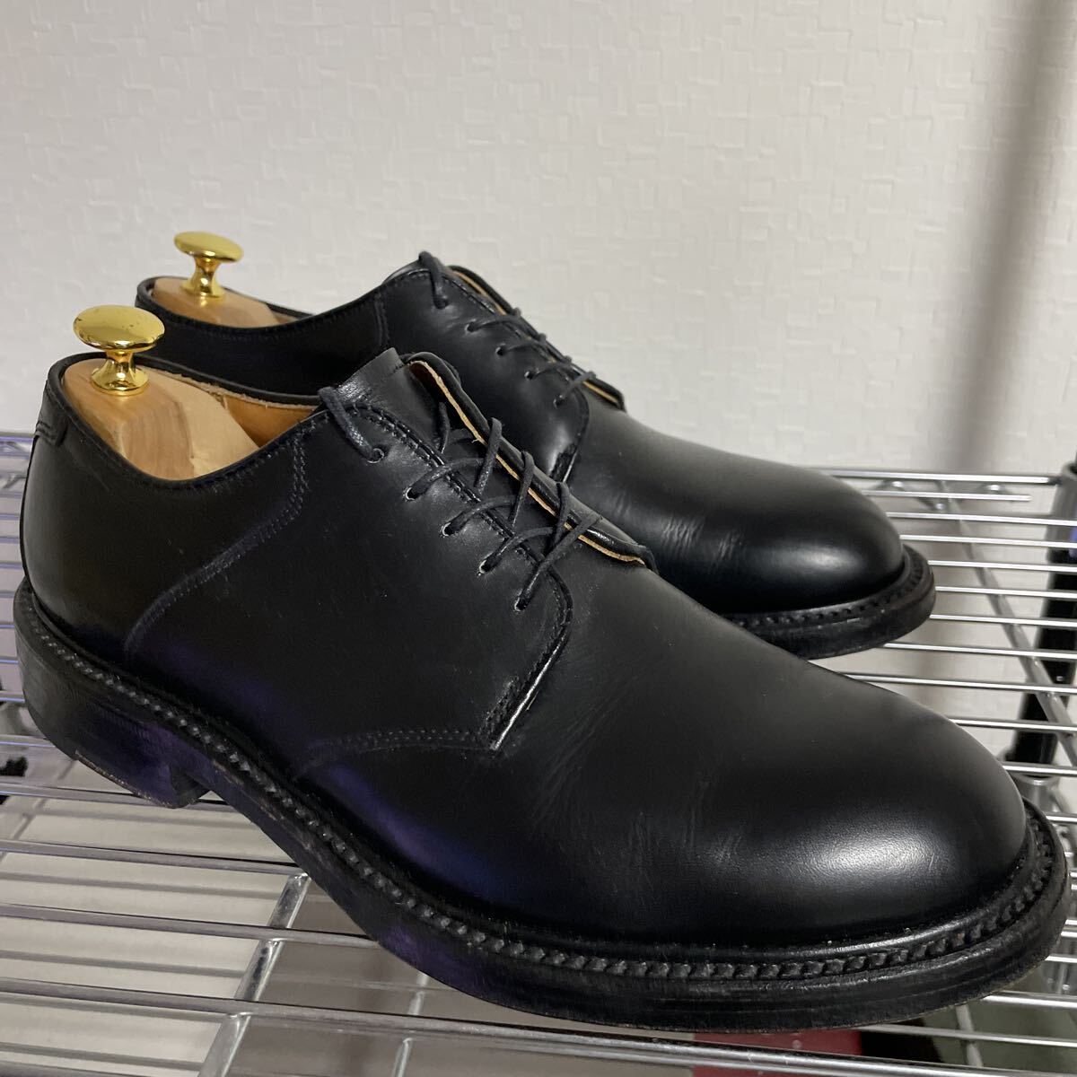 Aldenのサドルプレーントゥダービーの出品です。かなりかっこよく、美しい靴ですがこの1年は1度も履かなかったので出品する決心をしました。おそらく5回前後、多く見積もっても10回は履いていない超美品といっていいと思います。