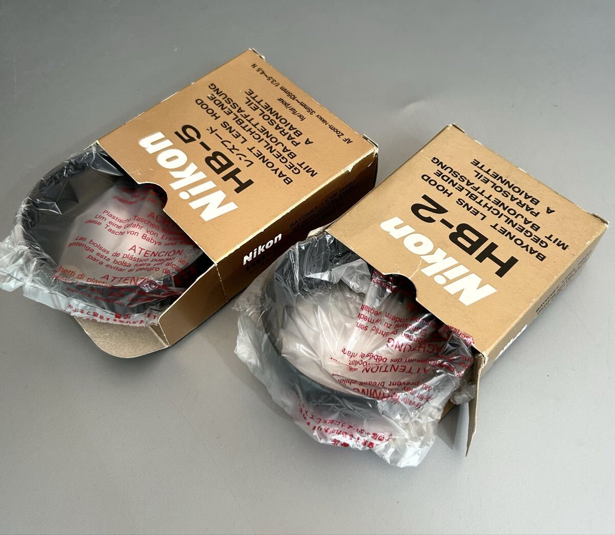 ニコン純正のバヨネット式レンズフード[Nikon BAYONET LENS HOOD HB-2 & HB-5]2点とも使用感の無い美品です。元箱が付属しております。 ☆送料無料です☆