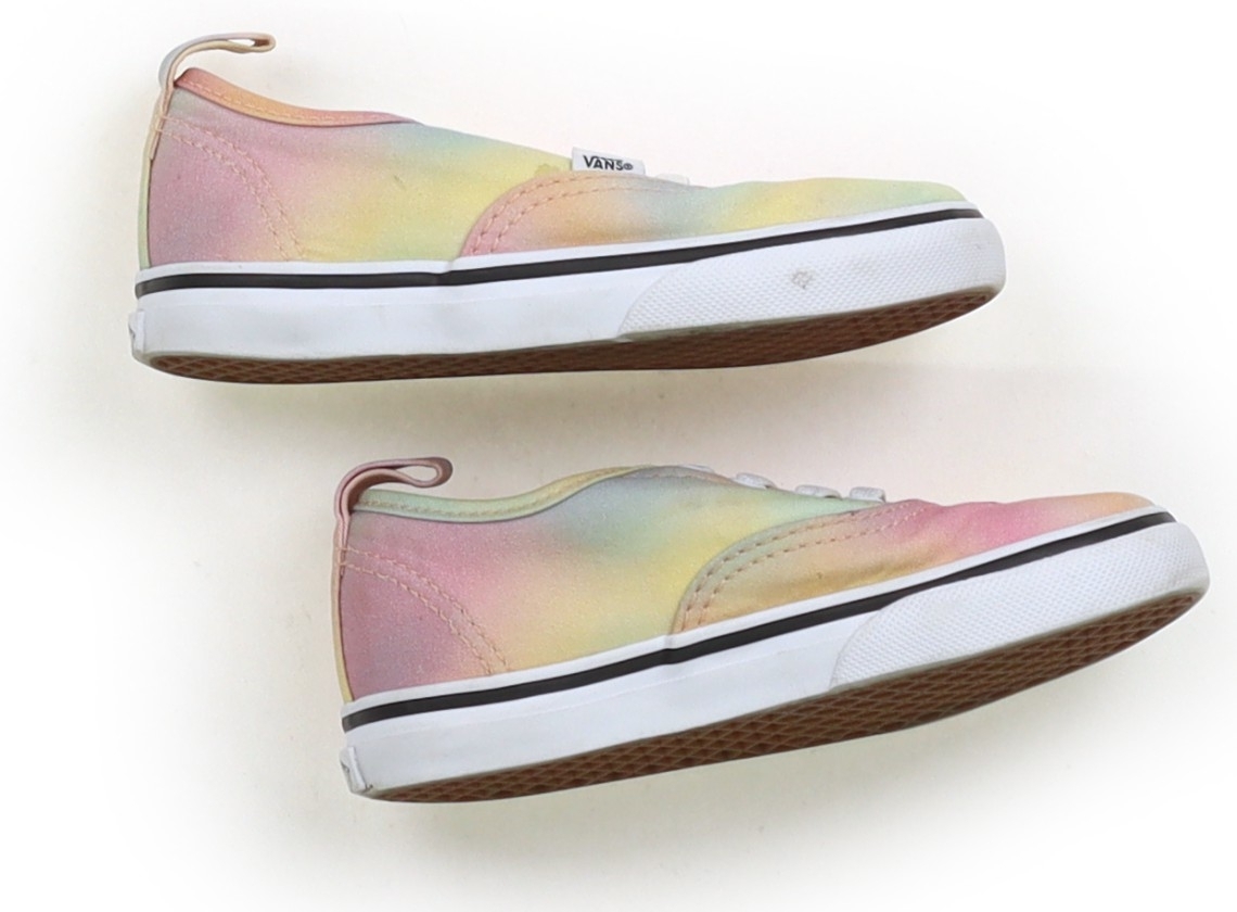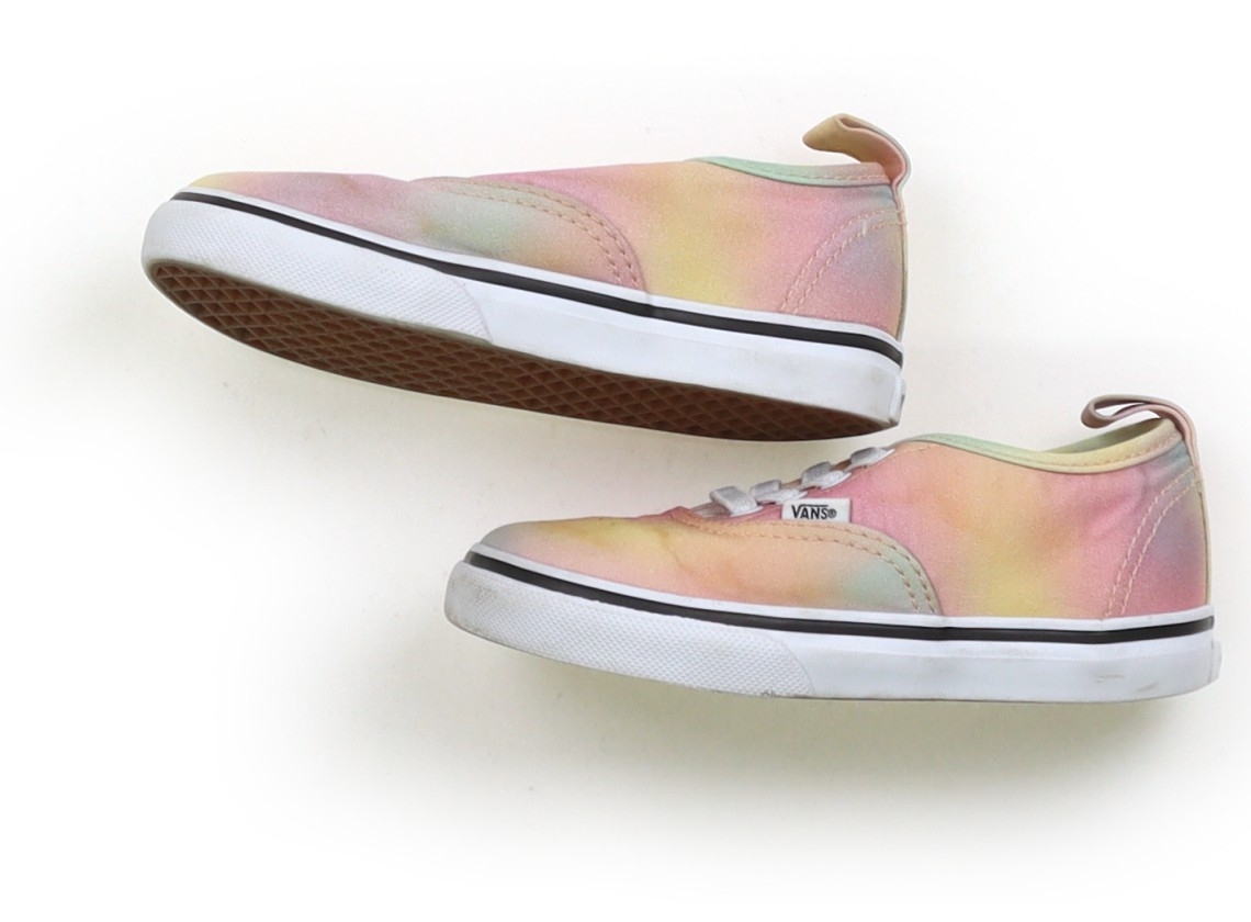 14.5cmサイズ表記。紐はゴム地です。全体的に茶色く汚れが目立ちます。外遊び用にいかがでしょうか。