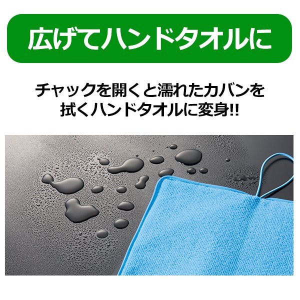 濡れた傘の持ち運びに困らない! マイクロファイバー生地が水滴をサッと吸収! ペットボトルホルダーや、カバン拭きなどとしても。 | |