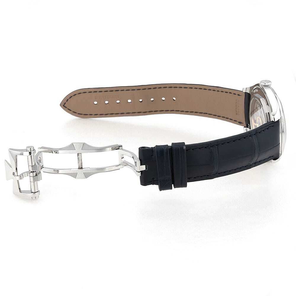 モデル情報 | 1956年に発表されたヴァシュロンコンスタンタンの名機「Ref.6073」に着想を得て、新しくデザインされた"フィフティーシックス"。ラウンドケースにマルタ十字の4枝をアレンジしたラグが特徴的です。こちらは、ブルー文字盤を採用した2019年発表モデルになります。防水3気圧。パワーリザーブ48時間。 |