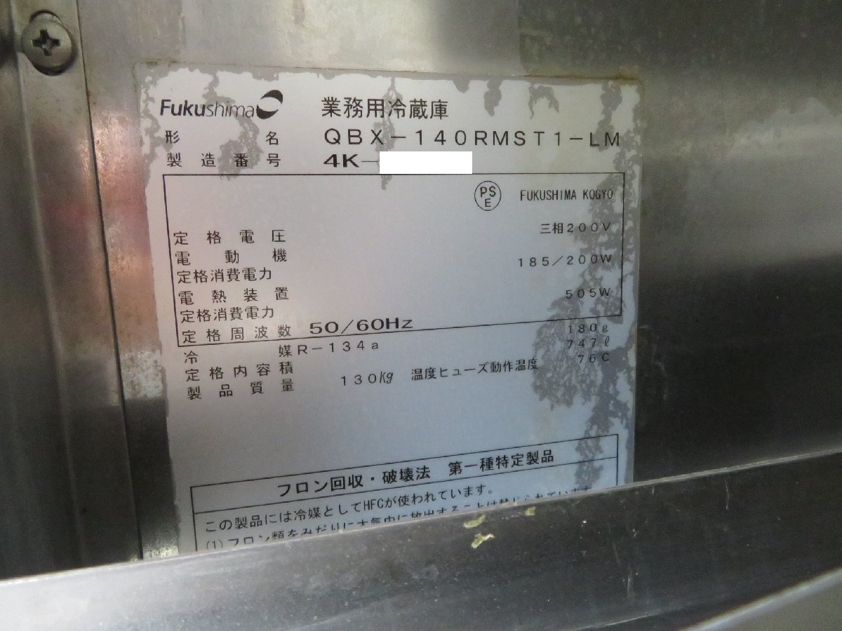 【保証付】フクシマ 業務用リターダー・冷凍生地解凍庫 QBX-140RMST1-LM 三相200V 幅770×奥950×高1910 MT2510030106