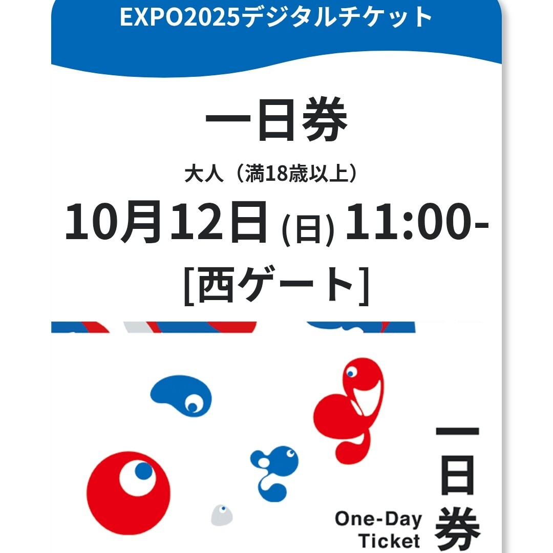 大阪・関西万博◆入場チケット◆10月12日(日)11:00〜◆大人一日券1枚◆10/12(日)11時〜◆西ゲート入場◆EXPO2025◆予約済み