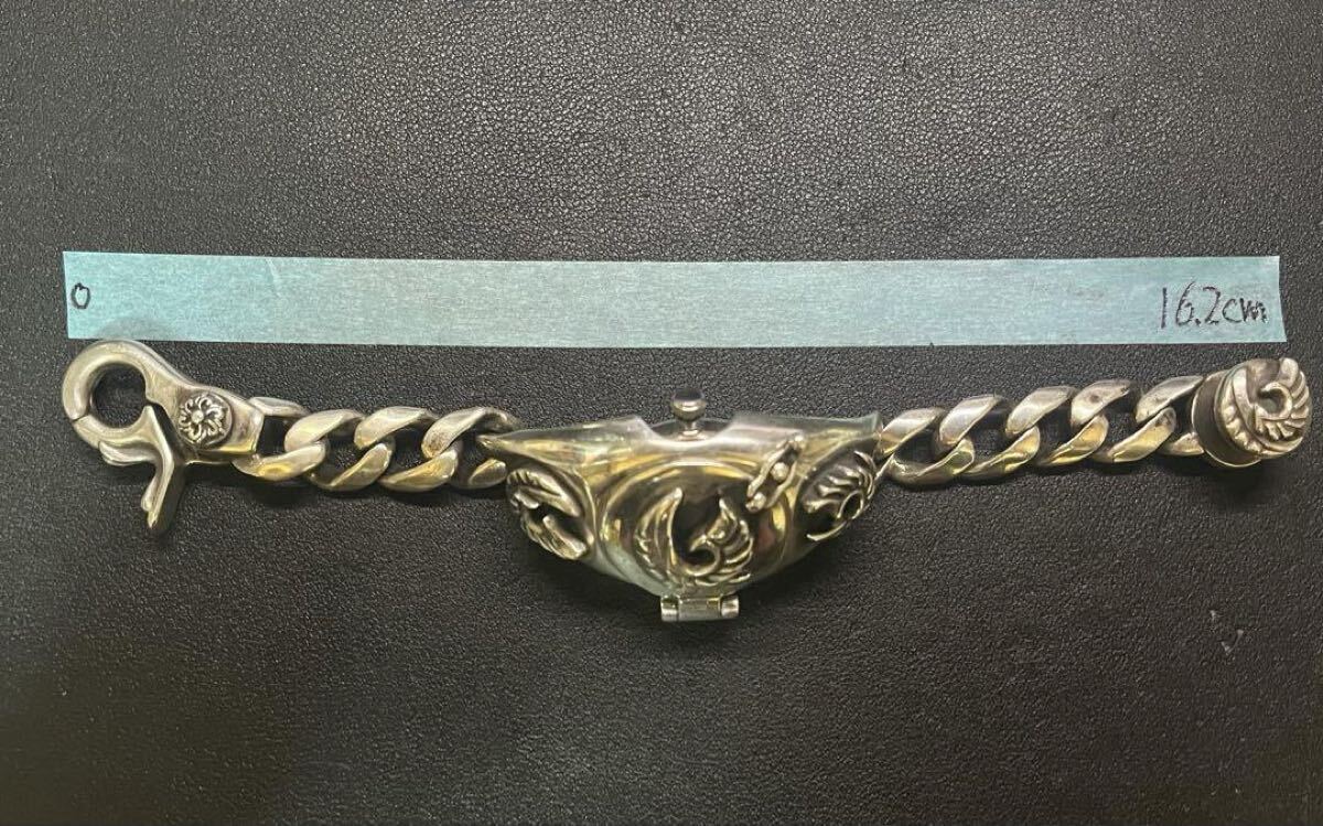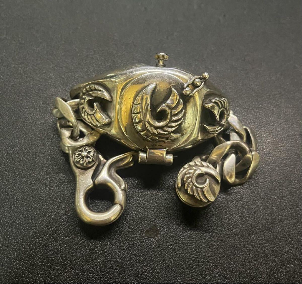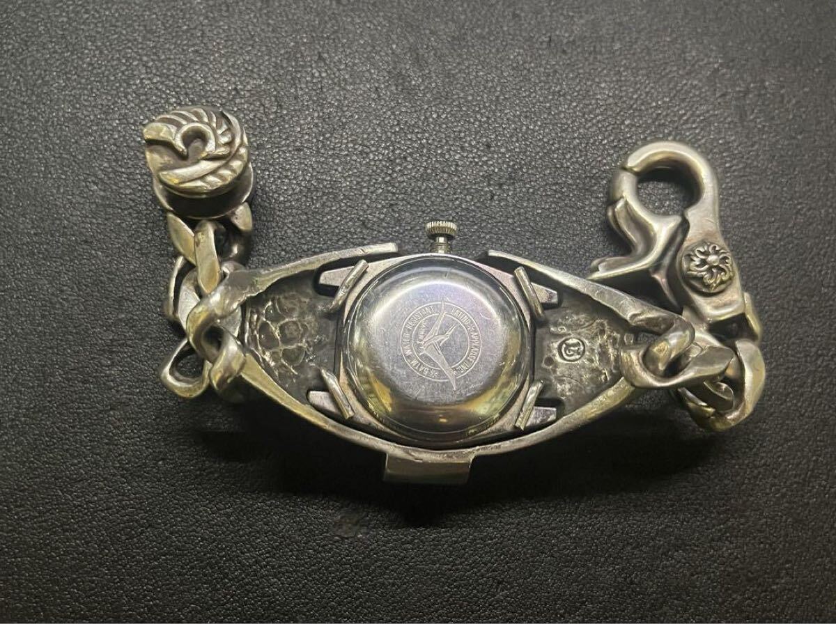 シルバー925 のリストウォッチケース 25年ほど前に購入しました。 蓋付きの時計は大変珍しいです。 紋様も大変珍しい紋様です。 ブレスレットはクリップ式になります。 クリップバネも問題はありません。 シルバー磨きにて手入れしましたり 時計は自動巻きにて問題なく動きます。 ただ時計の内側に細かいサビみたいなのがあります。 気になる方はメーカーでも交換できると思います。 経年劣化で細かいキズがありますが目立ったキズはございません。 写真にて判断してください。 付属品はございません。 神経質な方のご購入はご遠慮ください。 ノークレーム、ノーリターンで宜しくお願いします。 文字盤 カラー ブラック 文字針 シルバー色 秒針あり 全長16.2cm 文字盤カラーブラック ベルトカラーシルバー ムーブメント自動巻き式