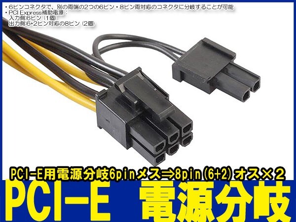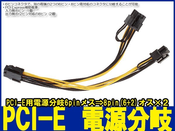 新品良品即決■ PCI Express■PCI-E 6pin【メス】→ 2x 8pin【オス】(6+2pin) 電源分岐ケーブル