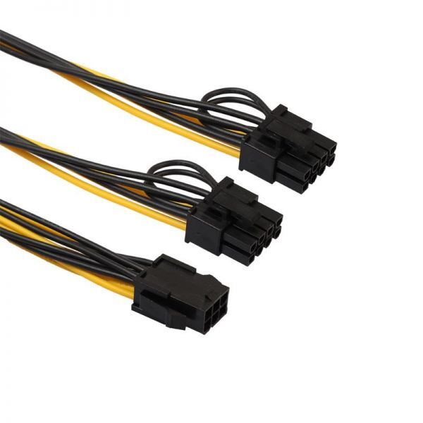 PCI Express電源用6ピンメスコネクタから、2つのPCI Express電源用(6+2ピン)8ピンオスコネクタに分岐可能な電源ケーブル