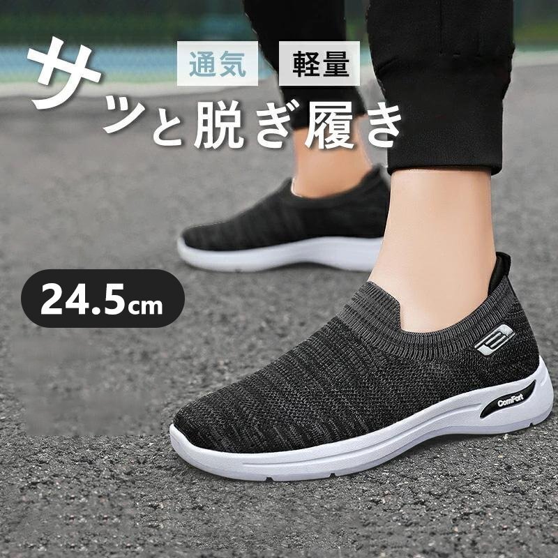 スリッポン スニーカー メンズ 靴 ウォーキング ナースシューズ 冬 黒 疲れにくい おしゃれ ウォーキング普段履き上履き大人紐なし 24.5cm