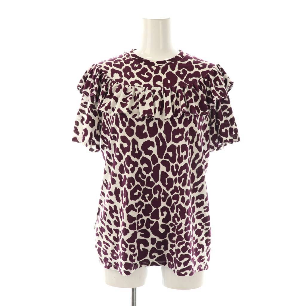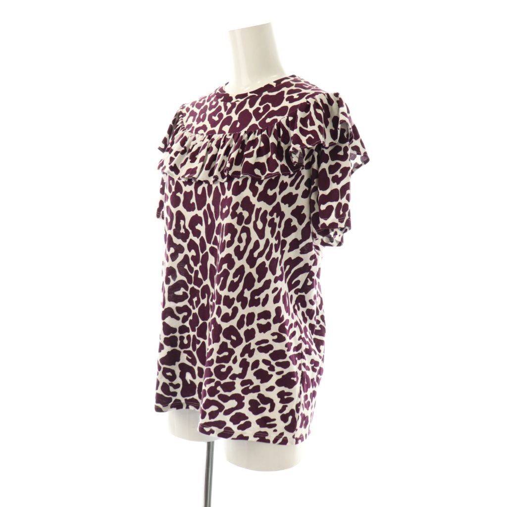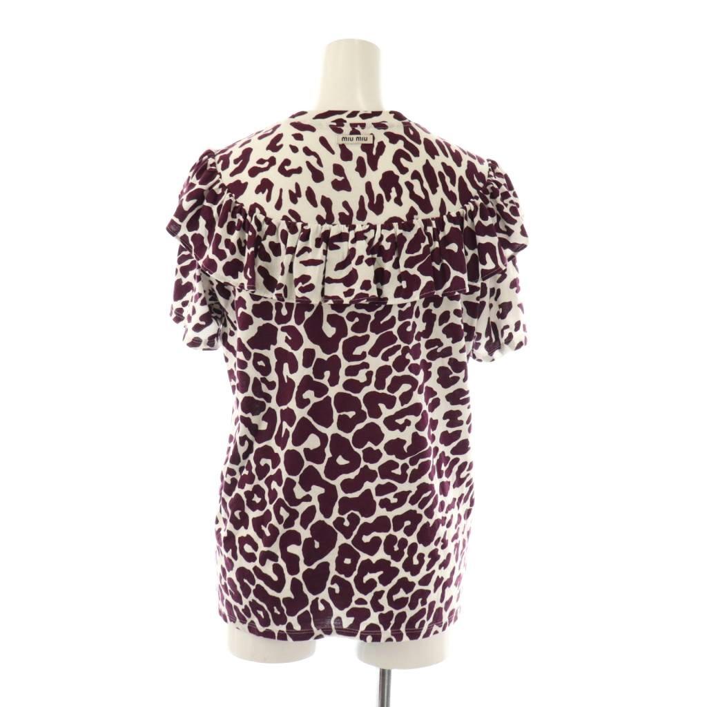 ミュウミュウ miumiu レオパード柄半袖フリルTシャツ カットソー コットン S 白 紫 /NR ■OS レディース