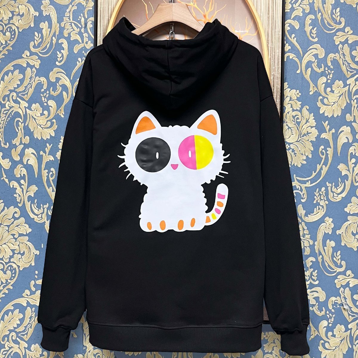 定価4万★christian milada・ミラノ発・パーカー★綿100% ソフト 保温 ネコ柄 可愛い オシャレ ゆったり スウェット トップス 男女兼用 春秋 L/48サイズ