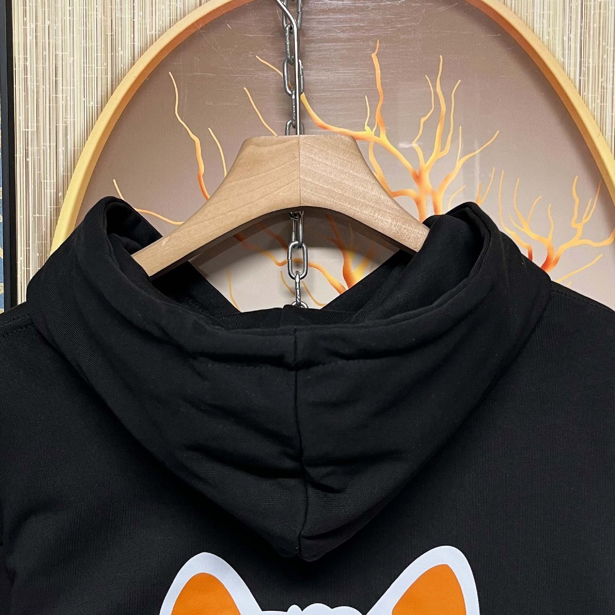 シンプルなフード付きデザインで、トレンド感と使い勝手を兼ね備えた一枚。フロントには可愛らしい猫のプリントが施されており、さりげないアクセントになっています。シンプルながらも存在感のあるデザインで、どんなコーディネートにもなじみやすく、デイリーユースにぴったりです。